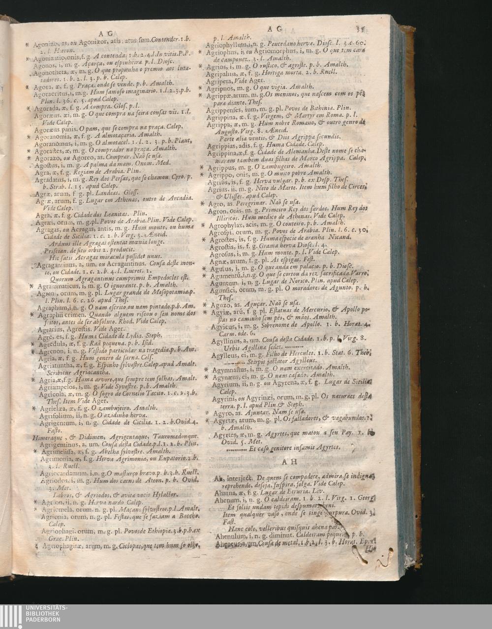 Prosodia In Vocabularium Bilingue, Latinum, Et Lusitanum, Digesta, In Qua Dictionum Significatio, Et Syllabarum Quantitas Expenditur : Opus Omnino Necessarium Professoribus Sacrarum, Et Humaniorum Literarum, Medicis, Juristis, & omnibus cujuscunque facultatis Studiosis, tum propter innumeras dictiones, quas à Sacris, & profanis Auctoribus decerptas exponit; tum propter recondita carmina omnium veterum Poetarum, & Recentiorum clari nominis, quos omnes Auctor ad expendendas syllabas perlegit / Auctore Doctore P. Benedicto Pereyra Soc. Jesu, Portugalensi, Borbano, in Eborensi Academiâ Primario olim Rhetorices Professore, & tandem in eâdem Academiâ S. Theologiæ Professore Primario