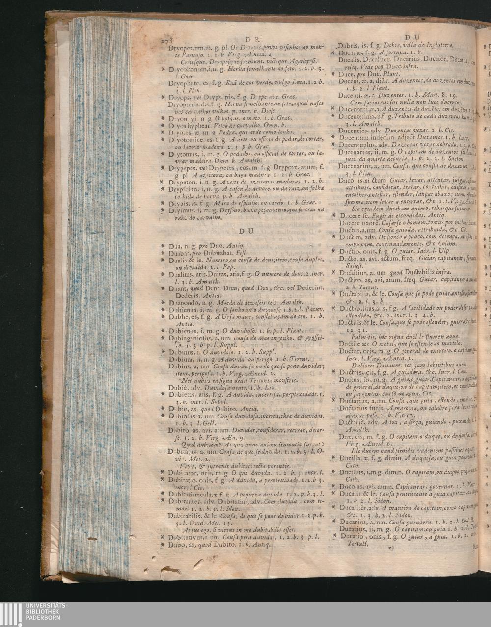 Prosodia In Vocabularium Bilingue, Latinum, Et Lusitanum, Digesta, In Qua Dictionum Significatio, Et Syllabarum Quantitas Expenditur : Opus Omnino Necessarium Professoribus Sacrarum, Et Humaniorum Literarum, Medicis, Juristis, & omnibus cujuscunque facultatis Studiosis, tum propter innumeras dictiones, quas à Sacris, & profanis Auctoribus decerptas exponit; tum propter recondita carmina omnium veterum Poetarum, & Recentiorum clari nominis, quos omnes Auctor ad expendendas syllabas perlegit / Auctore Doctore P. Benedicto Pereyra Soc. Jesu, Portugalensi, Borbano, in Eborensi Academiâ Primario olim Rhetorices Professore, & tandem in eâdem Academiâ S. Theologiæ Professore Primario
