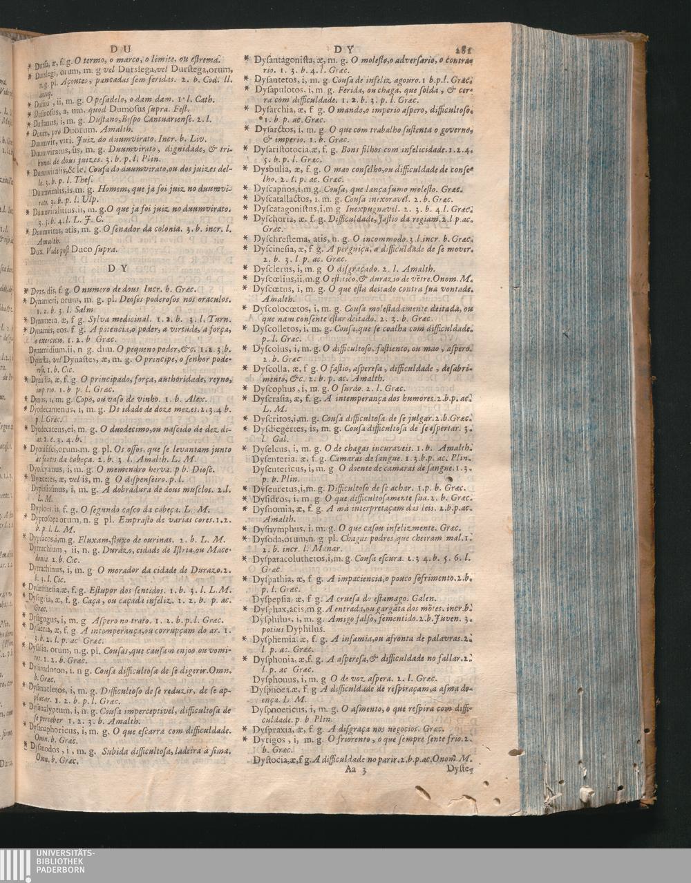 Prosodia In Vocabularium Bilingue, Latinum, Et Lusitanum, Digesta, In Qua Dictionum Significatio, Et Syllabarum Quantitas Expenditur : Opus Omnino Necessarium Professoribus Sacrarum, Et Humaniorum Literarum, Medicis, Juristis, & omnibus cujuscunque facultatis Studiosis, tum propter innumeras dictiones, quas à Sacris, & profanis Auctoribus decerptas exponit; tum propter recondita carmina omnium veterum Poetarum, & Recentiorum clari nominis, quos omnes Auctor ad expendendas syllabas perlegit / Auctore Doctore P. Benedicto Pereyra Soc. Jesu, Portugalensi, Borbano, in Eborensi Academiâ Primario olim Rhetorices Professore, & tandem in eâdem Academiâ S. Theologiæ Professore Primario