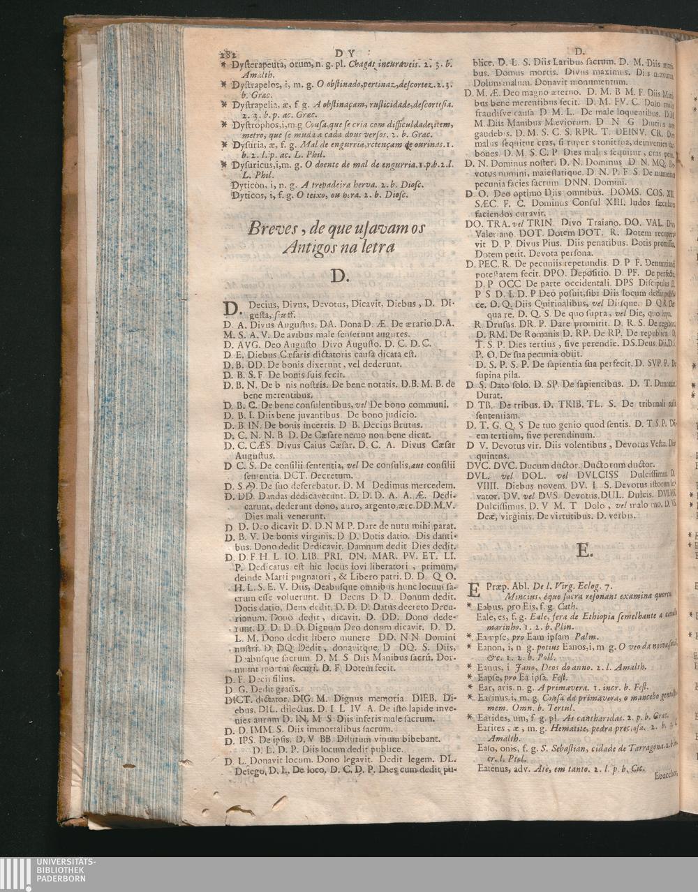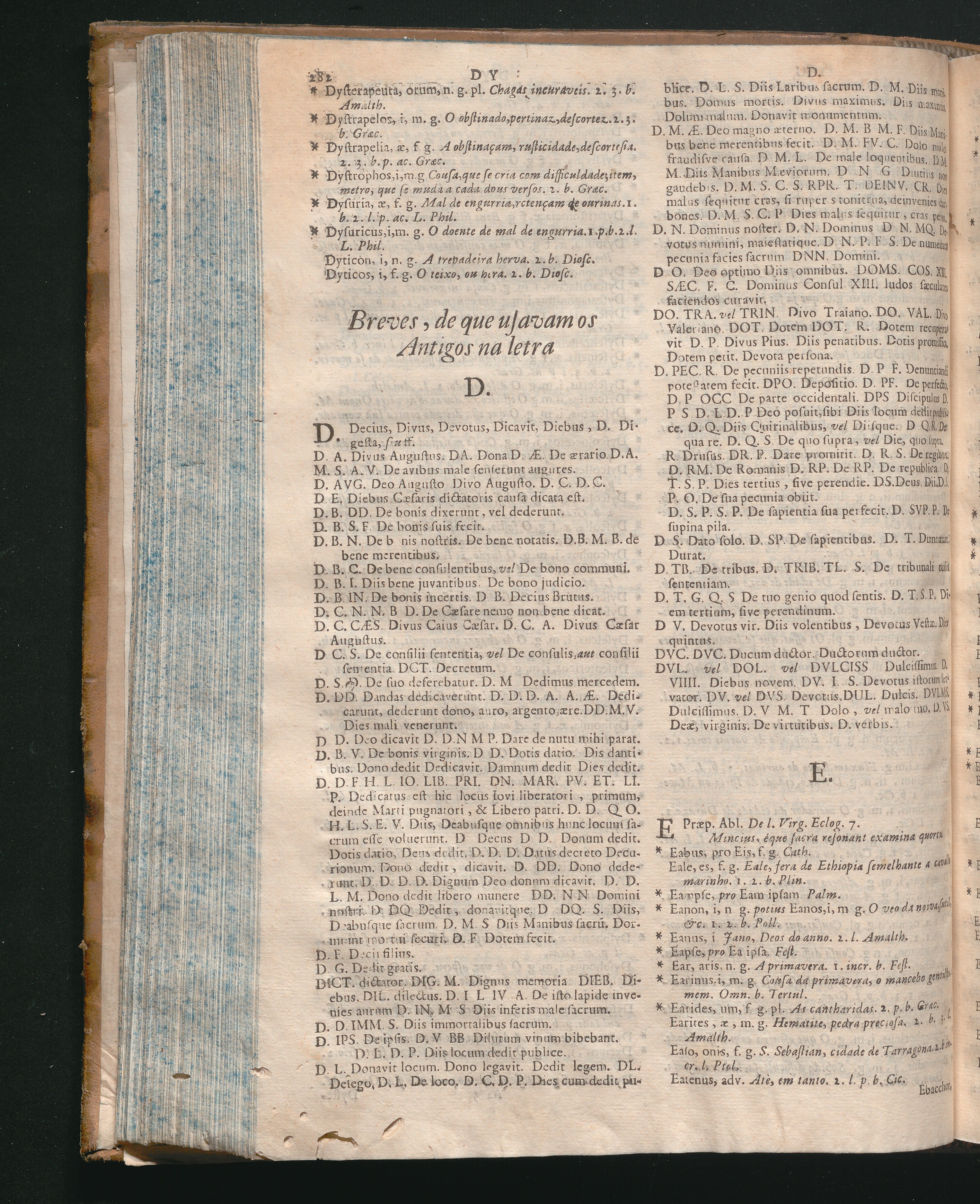 Prosodia In Vocabularium Bilingue, Latinum, Et Lusitanum, Digesta, In Qua Dictionum Significatio, Et Syllabarum Quantitas Expenditur : Opus Omnino Necessarium Professoribus Sacrarum, Et Humaniorum Literarum, Medicis, Juristis, & omnibus cujuscunque facultatis Studiosis, tum propter innumeras dictiones, quas à Sacris, & profanis Auctoribus decerptas exponit; tum propter recondita carmina omnium veterum Poetarum, & Recentiorum clari nominis, quos omnes Auctor ad expendendas syllabas perlegit / Auctore Doctore P. Benedicto Pereyra Soc. Jesu, Portugalensi, Borbano, in Eborensi Academiâ Primario olim Rhetorices Professore, & tandem in eâdem Academiâ S. Theologiæ Professore Primario