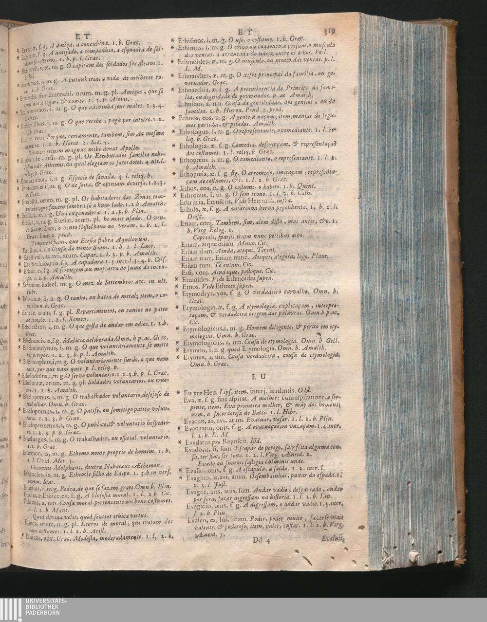 Prosodia In Vocabularium Bilingue, Latinum, Et Lusitanum, Digesta, In Qua Dictionum Significatio, Et Syllabarum Quantitas Expenditur : Opus Omnino Necessarium Professoribus Sacrarum, Et Humaniorum Literarum, Medicis, Juristis, & omnibus cujuscunque facultatis Studiosis, tum propter innumeras dictiones, quas à Sacris, & profanis Auctoribus decerptas exponit; tum propter recondita carmina omnium veterum Poetarum, & Recentiorum clari nominis, quos omnes Auctor ad expendendas syllabas perlegit / Auctore Doctore P. Benedicto Pereyra Soc. Jesu, Portugalensi, Borbano, in Eborensi Academiâ Primario olim Rhetorices Professore, & tandem in eâdem Academiâ S. Theologiæ Professore Primario