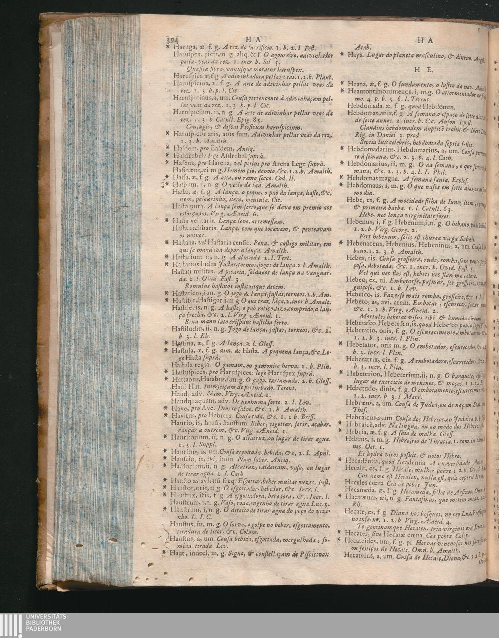 Prosodia In Vocabularium Bilingue, Latinum, Et Lusitanum, Digesta, In Qua Dictionum Significatio, Et Syllabarum Quantitas Expenditur : Opus Omnino Necessarium Professoribus Sacrarum, Et Humaniorum Literarum, Medicis, Juristis, & omnibus cujuscunque facultatis Studiosis, tum propter innumeras dictiones, quas à Sacris, & profanis Auctoribus decerptas exponit; tum propter recondita carmina omnium veterum Poetarum, & Recentiorum clari nominis, quos omnes Auctor ad expendendas syllabas perlegit / Auctore Doctore P. Benedicto Pereyra Soc. Jesu, Portugalensi, Borbano, in Eborensi Academiâ Primario olim Rhetorices Professore, & tandem in eâdem Academiâ S. Theologiæ Professore Primario