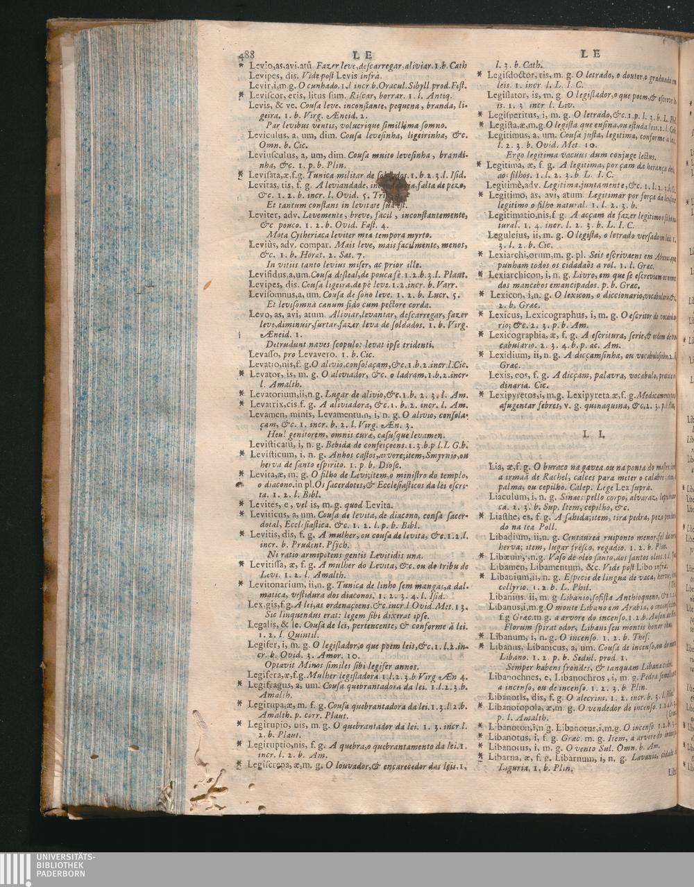 Prosodia In Vocabularium Bilingue, Latinum, Et Lusitanum, Digesta, In Qua Dictionum Significatio, Et Syllabarum Quantitas Expenditur : Opus Omnino Necessarium Professoribus Sacrarum, Et Humaniorum Literarum, Medicis, Juristis, & omnibus cujuscunque facultatis Studiosis, tum propter innumeras dictiones, quas à Sacris, & profanis Auctoribus decerptas exponit; tum propter recondita carmina omnium veterum Poetarum, & Recentiorum clari nominis, quos omnes Auctor ad expendendas syllabas perlegit / Auctore Doctore P. Benedicto Pereyra Soc. Jesu, Portugalensi, Borbano, in Eborensi Academiâ Primario olim Rhetorices Professore, & tandem in eâdem Academiâ S. Theologiæ Professore Primario