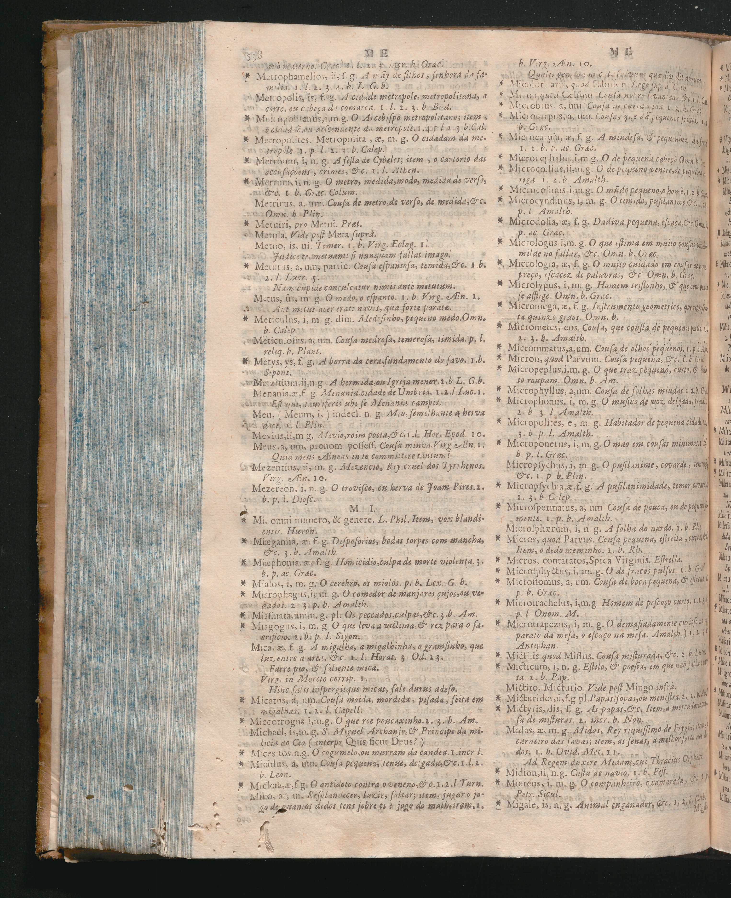 Prosodia In Vocabularium Bilingue, Latinum, Et Lusitanum, Digesta, In Qua Dictionum Significatio, Et Syllabarum Quantitas Expenditur : Opus Omnino Necessarium Professoribus Sacrarum, Et Humaniorum Literarum, Medicis, Juristis, & omnibus cujuscunque facultatis Studiosis, tum propter innumeras dictiones, quas à Sacris, & profanis Auctoribus decerptas exponit; tum propter recondita carmina omnium veterum Poetarum, & Recentiorum clari nominis, quos omnes Auctor ad expendendas syllabas perlegit / Auctore Doctore P. Benedicto Pereyra Soc. Jesu, Portugalensi, Borbano, in Eborensi Academiâ Primario olim Rhetorices Professore, & tandem in eâdem Academiâ S. Theologiæ Professore Primario