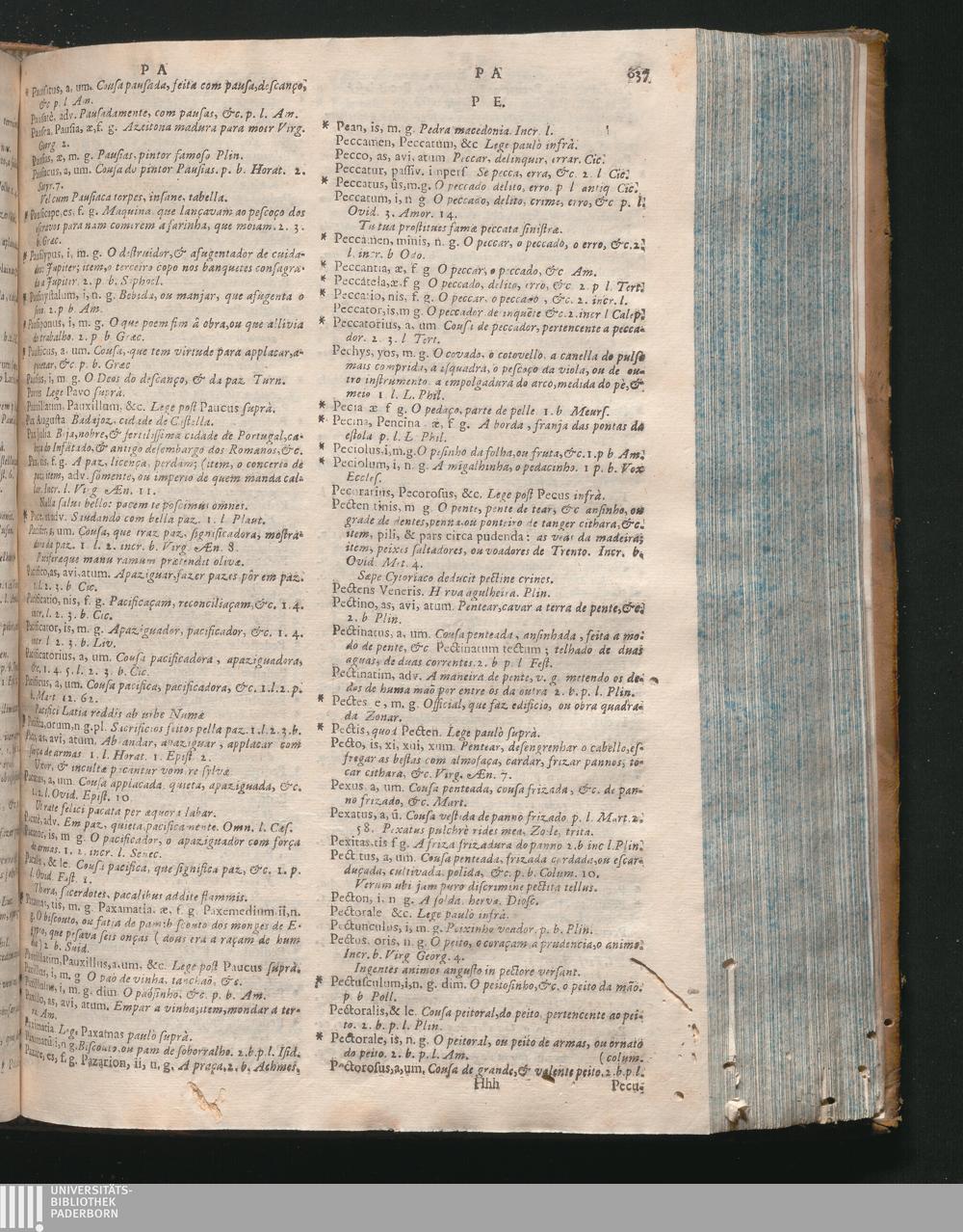 Prosodia In Vocabularium Bilingue, Latinum, Et Lusitanum, Digesta, In Qua Dictionum Significatio, Et Syllabarum Quantitas Expenditur : Opus Omnino Necessarium Professoribus Sacrarum, Et Humaniorum Literarum, Medicis, Juristis, & omnibus cujuscunque facultatis Studiosis, tum propter innumeras dictiones, quas à Sacris, & profanis Auctoribus decerptas exponit; tum propter recondita carmina omnium veterum Poetarum, & Recentiorum clari nominis, quos omnes Auctor ad expendendas syllabas perlegit / Auctore Doctore P. Benedicto Pereyra Soc. Jesu, Portugalensi, Borbano, in Eborensi Academiâ Primario olim Rhetorices Professore, & tandem in eâdem Academiâ S. Theologiæ Professore Primario