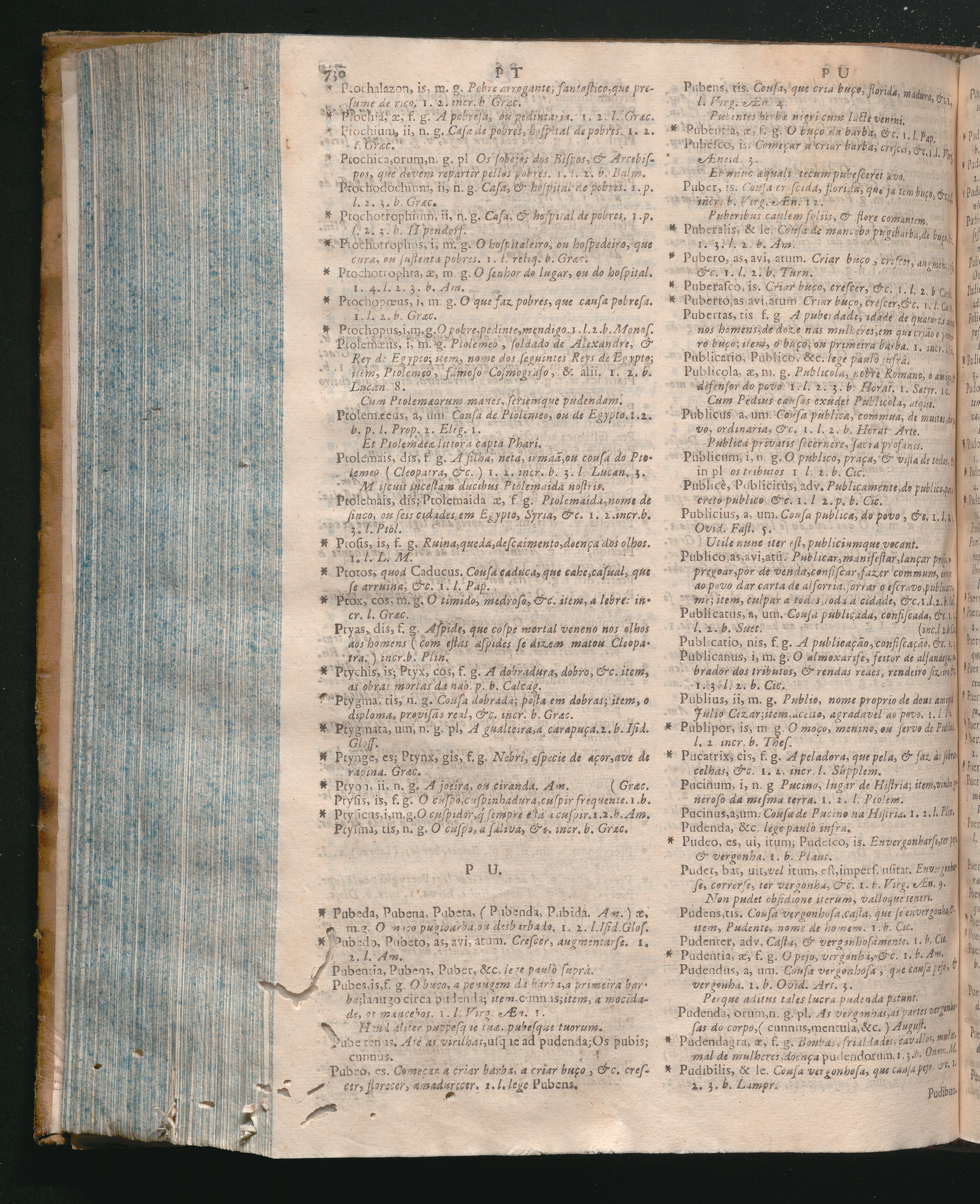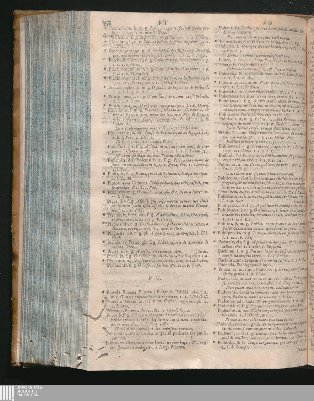 Prosodia In Vocabularium Bilingue, Latinum, Et Lusitanum, Digesta, In Qua Dictionum Significatio, Et Syllabarum Quantitas Expenditur : Opus Omnino Necessarium Professoribus Sacrarum, Et Humaniorum Literarum, Medicis, Juristis, & omnibus cujuscunque facultatis Studiosis, tum propter innumeras dictiones, quas à Sacris, & profanis Auctoribus decerptas exponit; tum propter recondita carmina omnium veterum Poetarum, & Recentiorum clari nominis, quos omnes Auctor ad expendendas syllabas perlegit / Auctore Doctore P. Benedicto Pereyra Soc. Jesu, Portugalensi, Borbano, in Eborensi Academiâ Primario olim Rhetorices Professore, & tandem in eâdem Academiâ S. Theologiæ Professore Primario