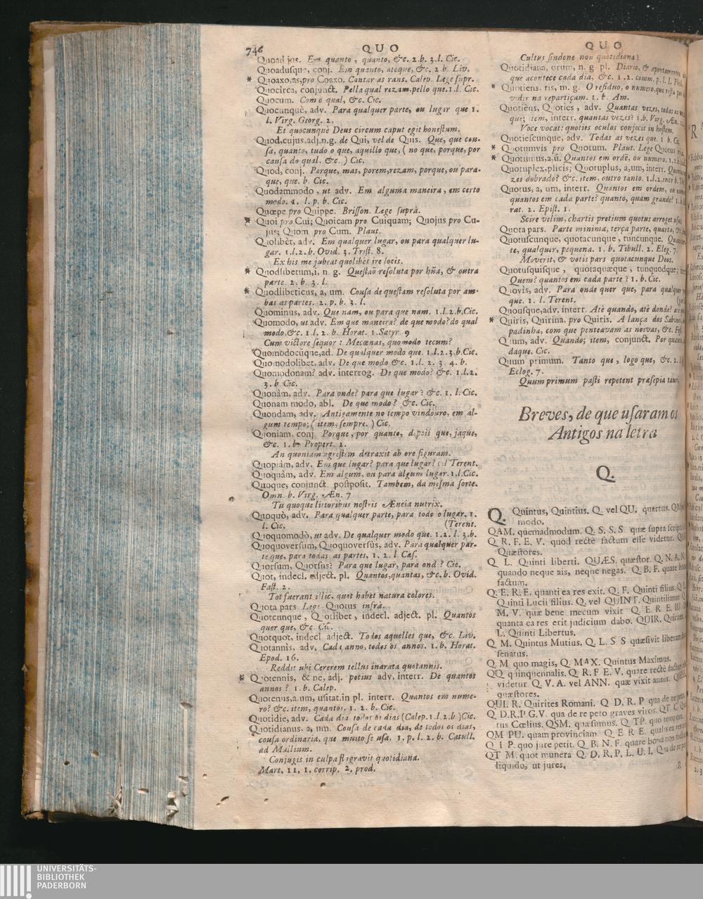 Prosodia In Vocabularium Bilingue, Latinum, Et Lusitanum, Digesta, In Qua Dictionum Significatio, Et Syllabarum Quantitas Expenditur : Opus Omnino Necessarium Professoribus Sacrarum, Et Humaniorum Literarum, Medicis, Juristis, & omnibus cujuscunque facultatis Studiosis, tum propter innumeras dictiones, quas à Sacris, & profanis Auctoribus decerptas exponit; tum propter recondita carmina omnium veterum Poetarum, & Recentiorum clari nominis, quos omnes Auctor ad expendendas syllabas perlegit / Auctore Doctore P. Benedicto Pereyra Soc. Jesu, Portugalensi, Borbano, in Eborensi Academiâ Primario olim Rhetorices Professore, & tandem in eâdem Academiâ S. Theologiæ Professore Primario