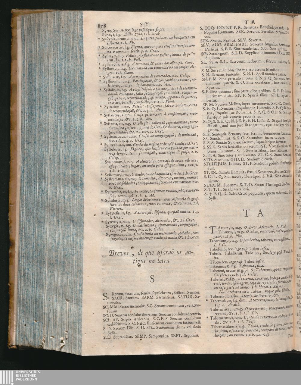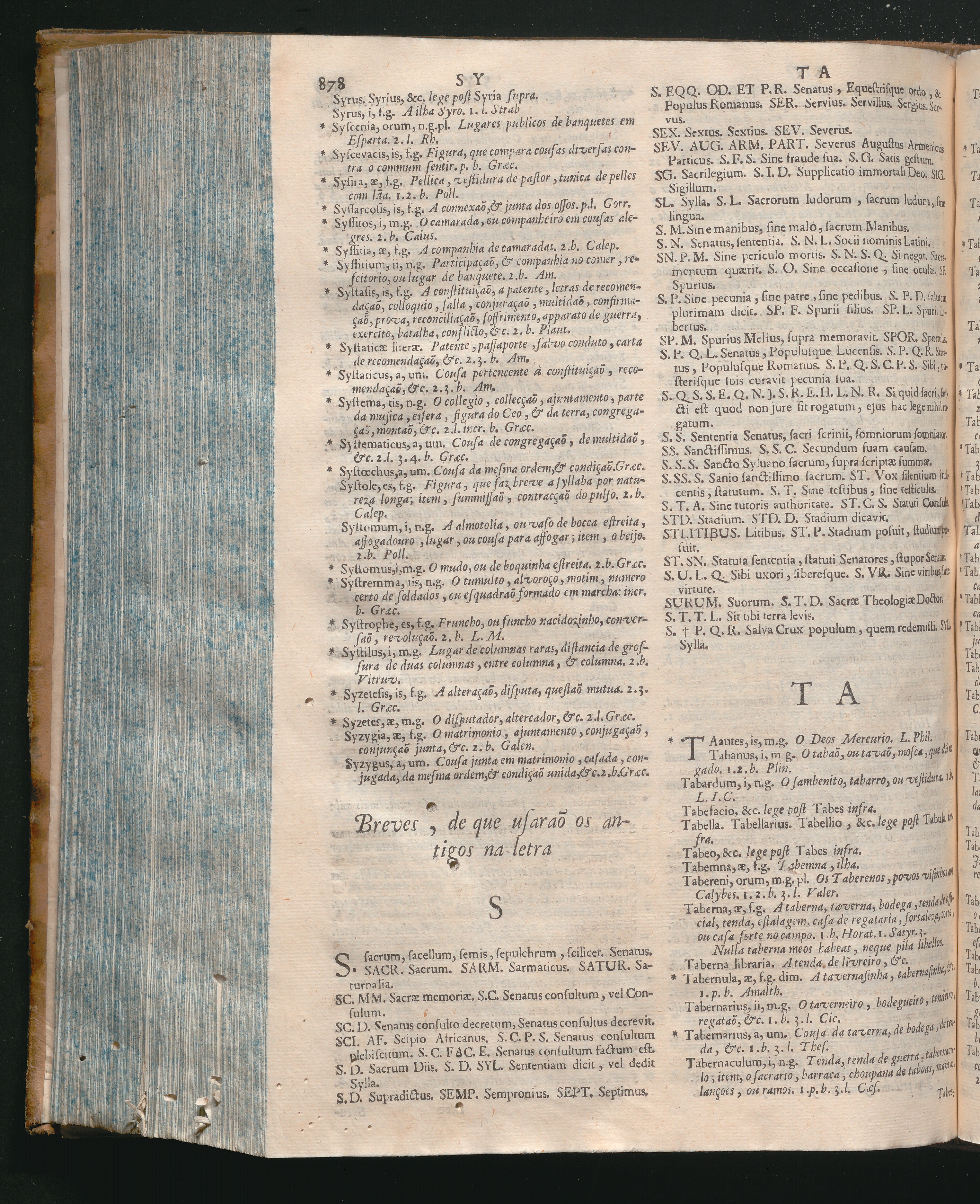 Prosodia In Vocabularium Bilingue, Latinum, Et Lusitanum, Digesta, In Qua Dictionum Significatio, Et Syllabarum Quantitas Expenditur : Opus Omnino Necessarium Professoribus Sacrarum, Et Humaniorum Literarum, Medicis, Juristis, & omnibus cujuscunque facultatis Studiosis, tum propter innumeras dictiones, quas à Sacris, & profanis Auctoribus decerptas exponit; tum propter recondita carmina omnium veterum Poetarum, & Recentiorum clari nominis, quos omnes Auctor ad expendendas syllabas perlegit / Auctore Doctore P. Benedicto Pereyra Soc. Jesu, Portugalensi, Borbano, in Eborensi Academiâ Primario olim Rhetorices Professore, & tandem in eâdem Academiâ S. Theologiæ Professore Primario