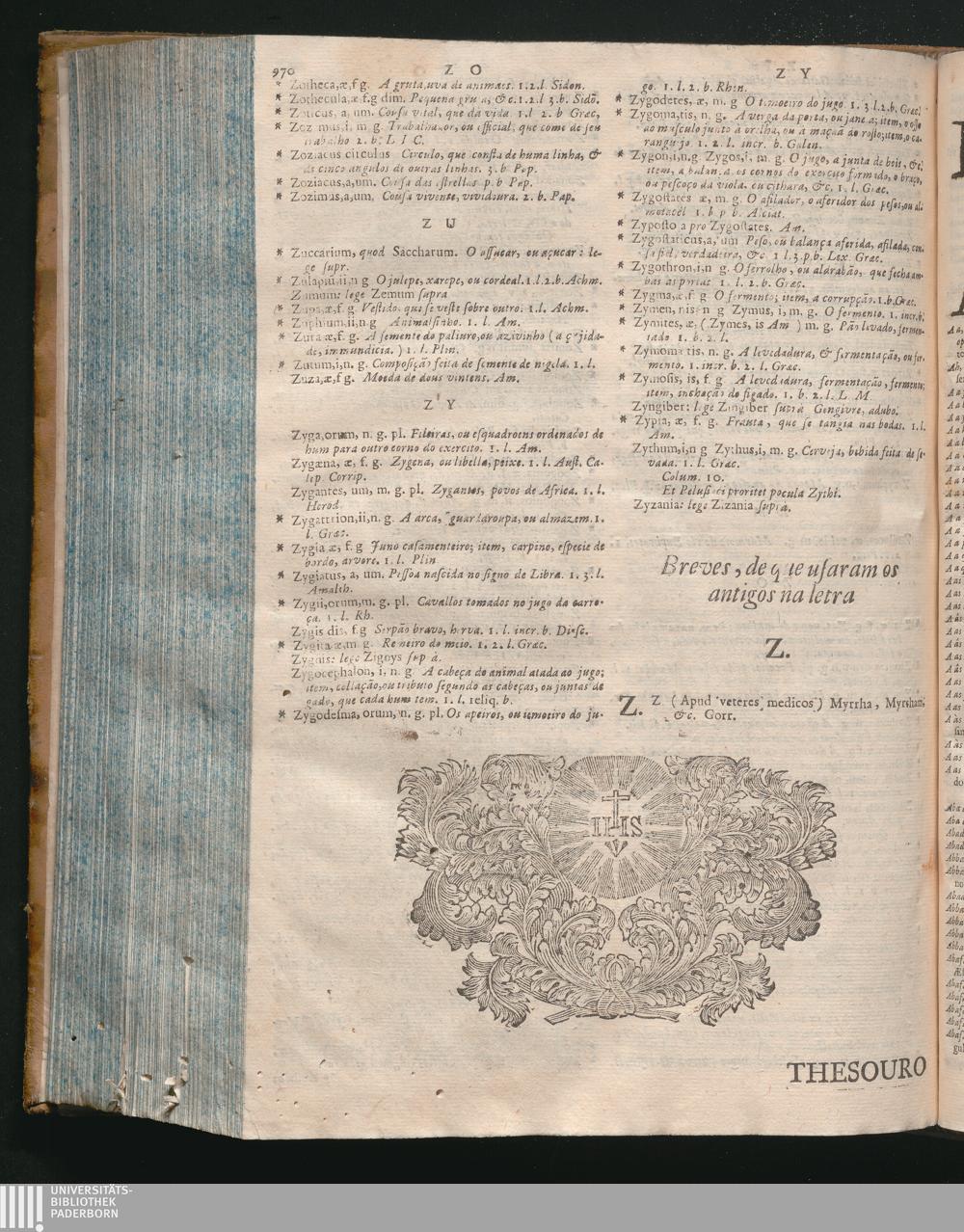 Prosodia In Vocabularium Bilingue, Latinum, Et Lusitanum, Digesta, In Qua Dictionum Significatio, Et Syllabarum Quantitas Expenditur : Opus Omnino Necessarium Professoribus Sacrarum, Et Humaniorum Literarum, Medicis, Juristis, & omnibus cujuscunque facultatis Studiosis, tum propter innumeras dictiones, quas à Sacris, & profanis Auctoribus decerptas exponit; tum propter recondita carmina omnium veterum Poetarum, & Recentiorum clari nominis, quos omnes Auctor ad expendendas syllabas perlegit / Auctore Doctore P. Benedicto Pereyra Soc. Jesu, Portugalensi, Borbano, in Eborensi Academiâ Primario olim Rhetorices Professore, & tandem in eâdem Academiâ S. Theologiæ Professore Primario