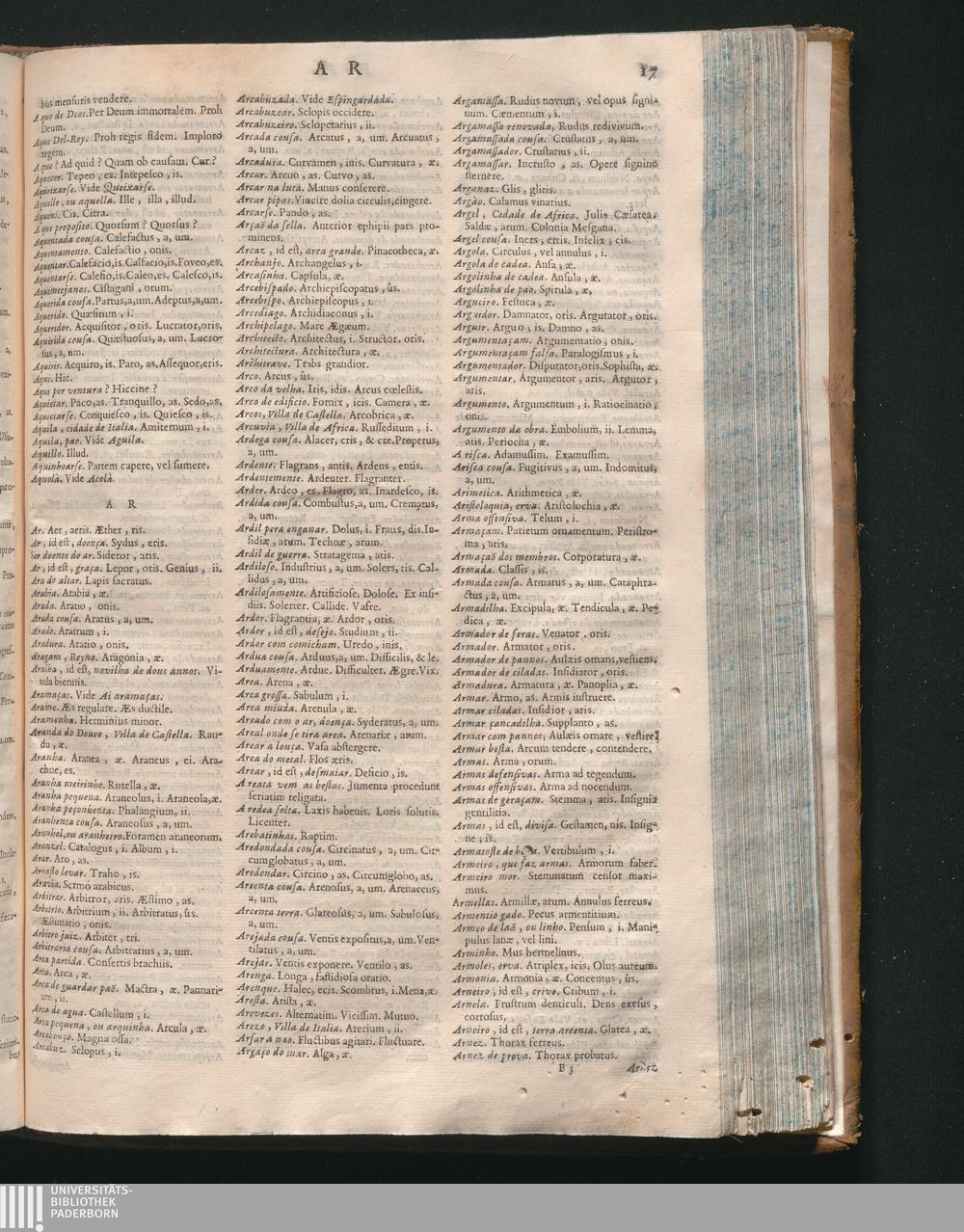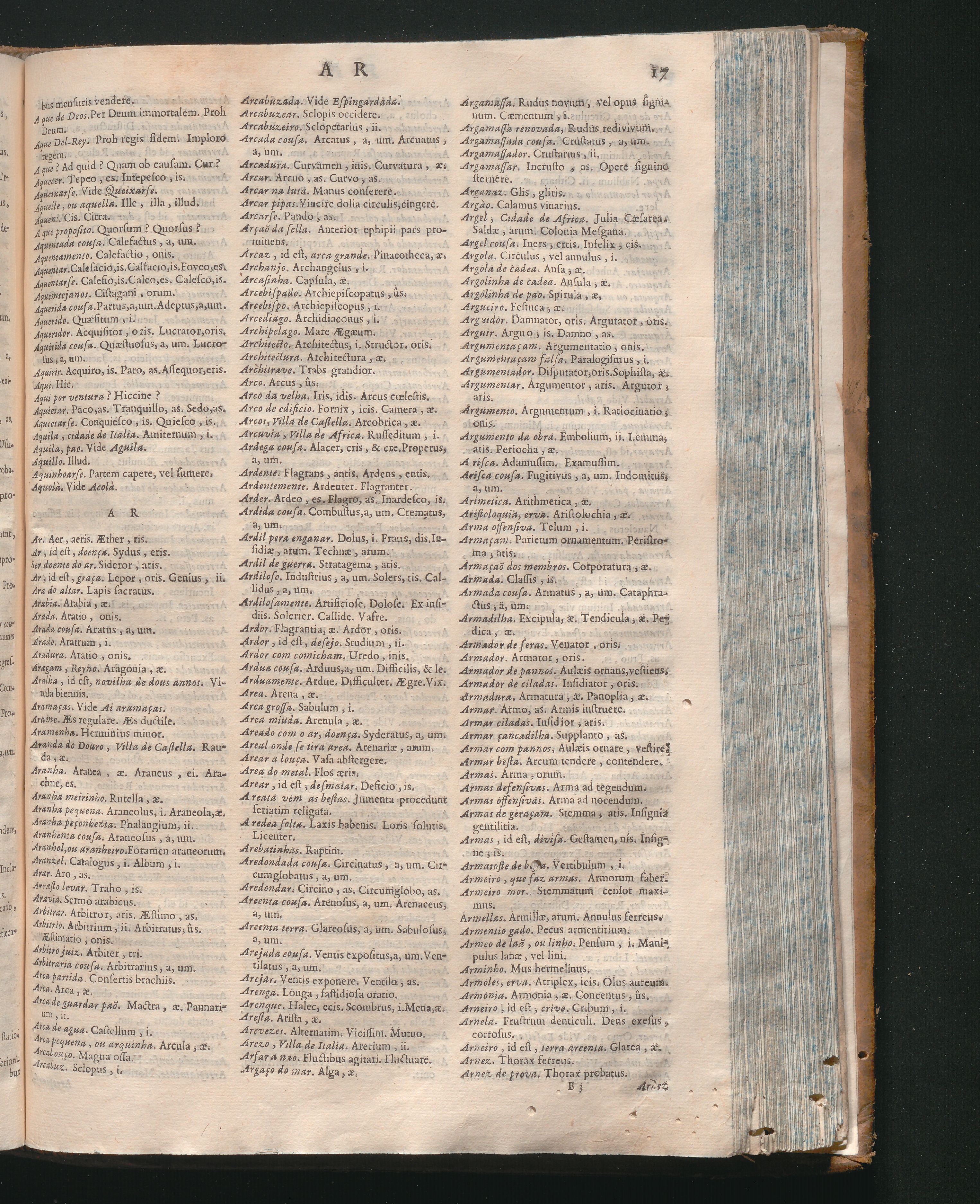 Prosodia In Vocabularium Bilingue, Latinum, Et Lusitanum, Digesta, In Qua Dictionum Significatio, Et Syllabarum Quantitas Expenditur : Opus Omnino Necessarium Professoribus Sacrarum, Et Humaniorum Literarum, Medicis, Juristis, & omnibus cujuscunque facultatis Studiosis, tum propter innumeras dictiones, quas à Sacris, & profanis Auctoribus decerptas exponit; tum propter recondita carmina omnium veterum Poetarum, & Recentiorum clari nominis, quos omnes Auctor ad expendendas syllabas perlegit / Auctore Doctore P. Benedicto Pereyra Soc. Jesu, Portugalensi, Borbano, in Eborensi Academiâ Primario olim Rhetorices Professore, & tandem in eâdem Academiâ S. Theologiæ Professore Primario