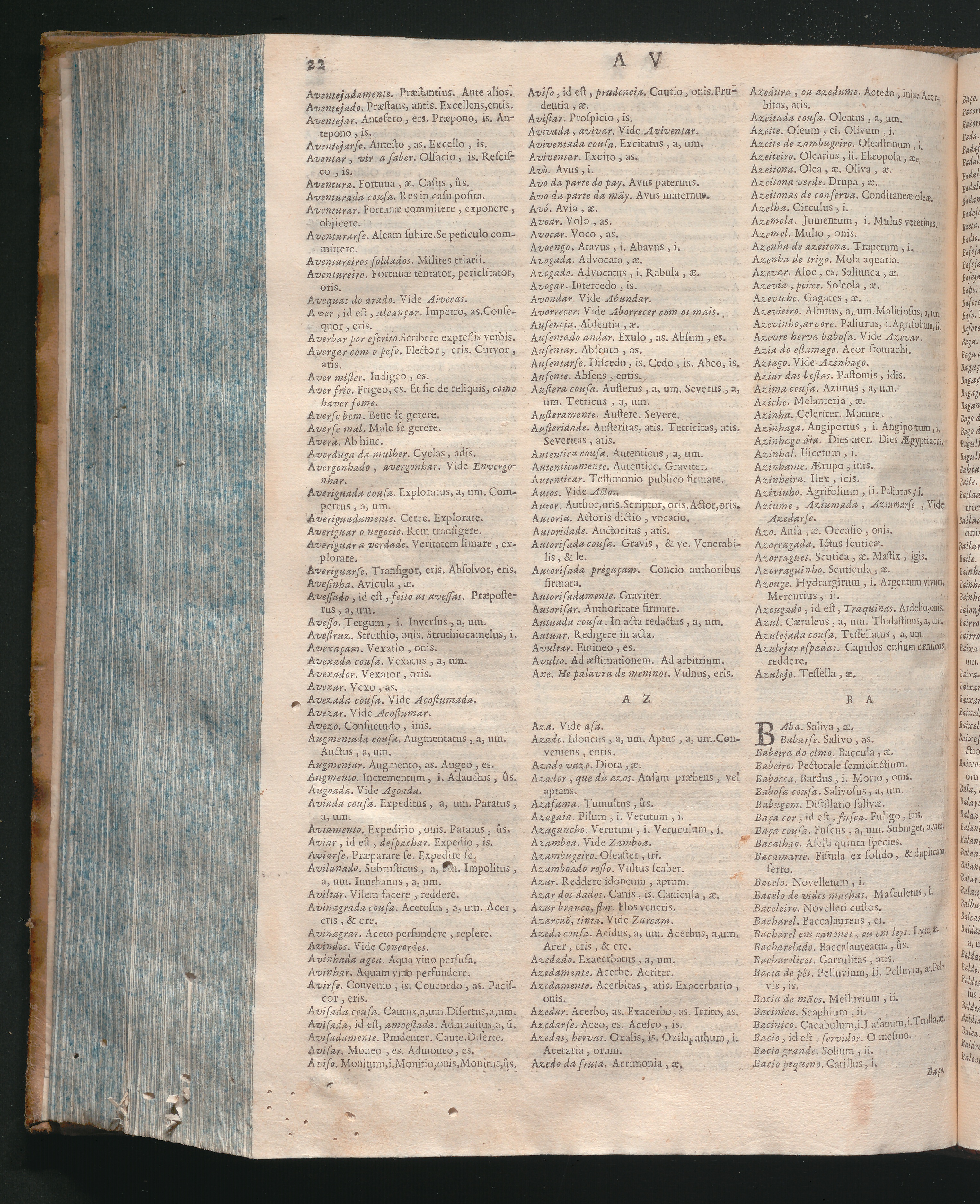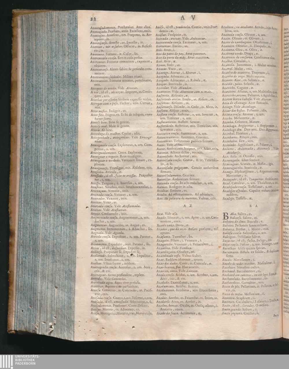 Prosodia In Vocabularium Bilingue, Latinum, Et Lusitanum, Digesta, In Qua Dictionum Significatio, Et Syllabarum Quantitas Expenditur : Opus Omnino Necessarium Professoribus Sacrarum, Et Humaniorum Literarum, Medicis, Juristis, & omnibus cujuscunque facultatis Studiosis, tum propter innumeras dictiones, quas à Sacris, & profanis Auctoribus decerptas exponit; tum propter recondita carmina omnium veterum Poetarum, & Recentiorum clari nominis, quos omnes Auctor ad expendendas syllabas perlegit / Auctore Doctore P. Benedicto Pereyra Soc. Jesu, Portugalensi, Borbano, in Eborensi Academiâ Primario olim Rhetorices Professore, & tandem in eâdem Academiâ S. Theologiæ Professore Primario