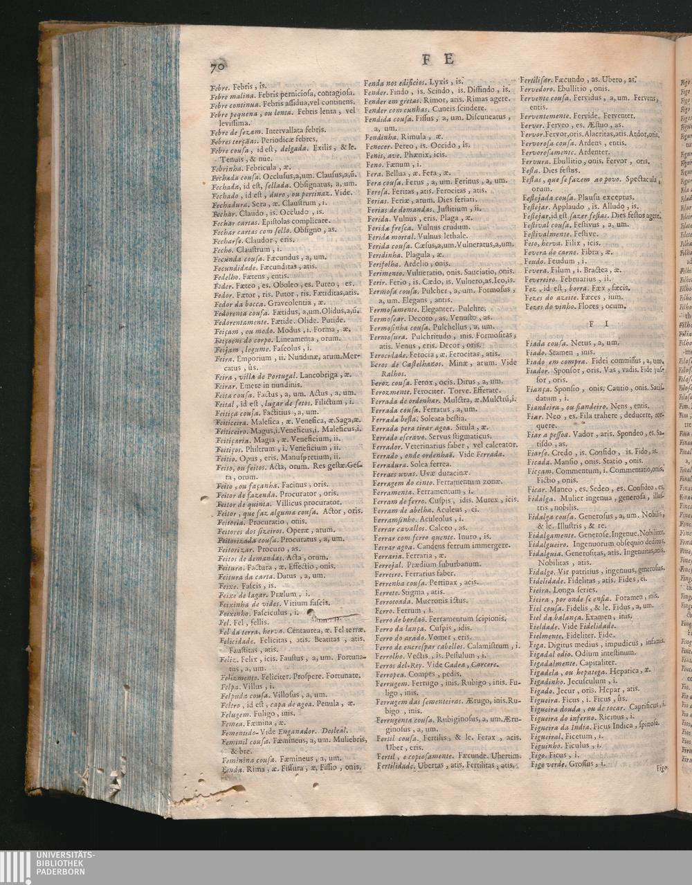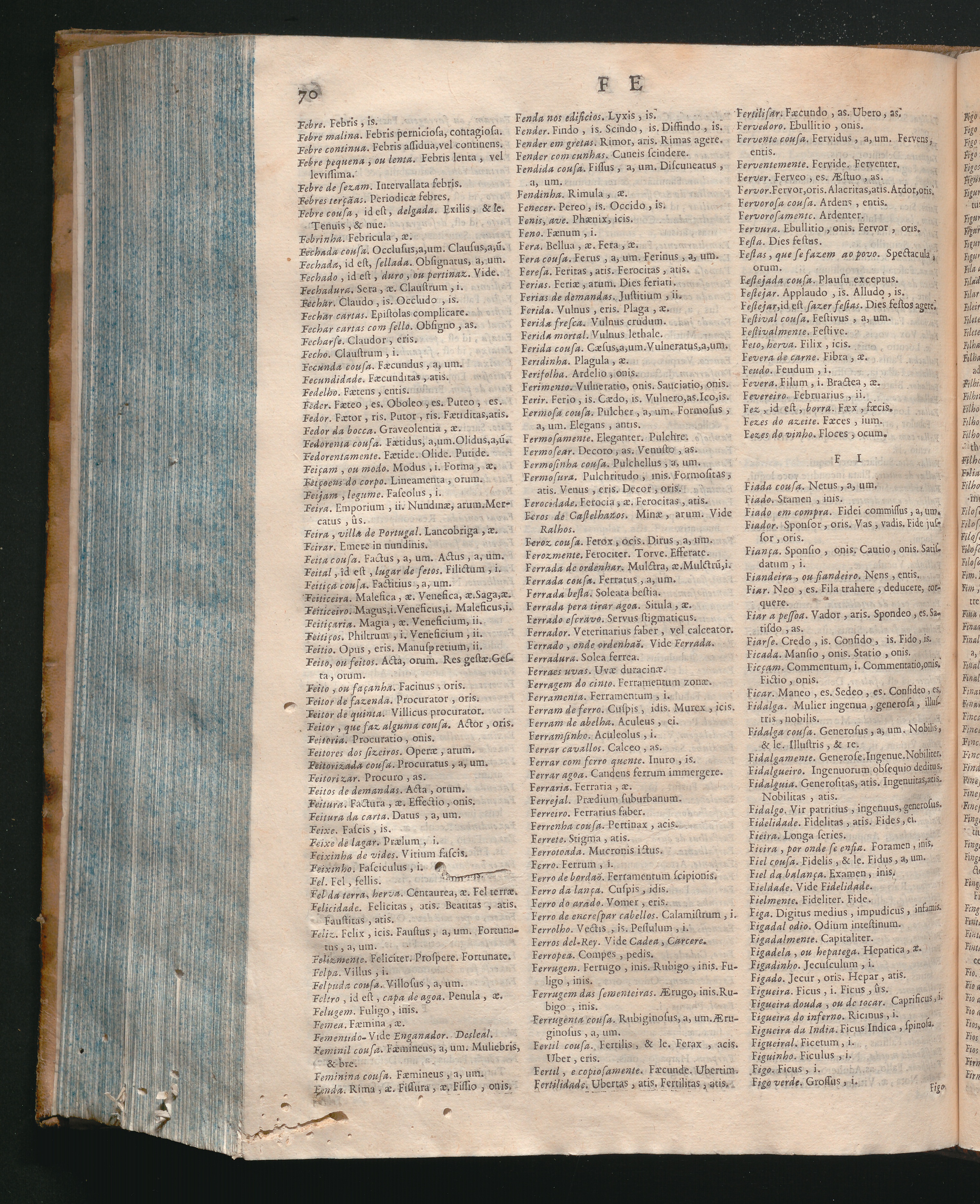 Prosodia In Vocabularium Bilingue, Latinum, Et Lusitanum, Digesta, In Qua Dictionum Significatio, Et Syllabarum Quantitas Expenditur : Opus Omnino Necessarium Professoribus Sacrarum, Et Humaniorum Literarum, Medicis, Juristis, & omnibus cujuscunque facultatis Studiosis, tum propter innumeras dictiones, quas à Sacris, & profanis Auctoribus decerptas exponit; tum propter recondita carmina omnium veterum Poetarum, & Recentiorum clari nominis, quos omnes Auctor ad expendendas syllabas perlegit / Auctore Doctore P. Benedicto Pereyra Soc. Jesu, Portugalensi, Borbano, in Eborensi Academiâ Primario olim Rhetorices Professore, & tandem in eâdem Academiâ S. Theologiæ Professore Primario