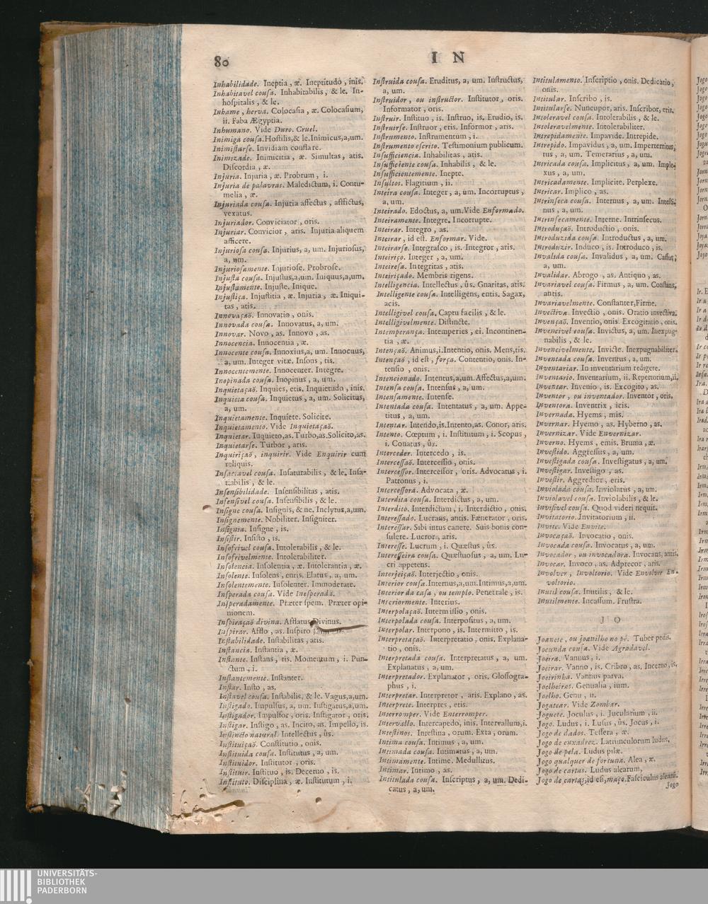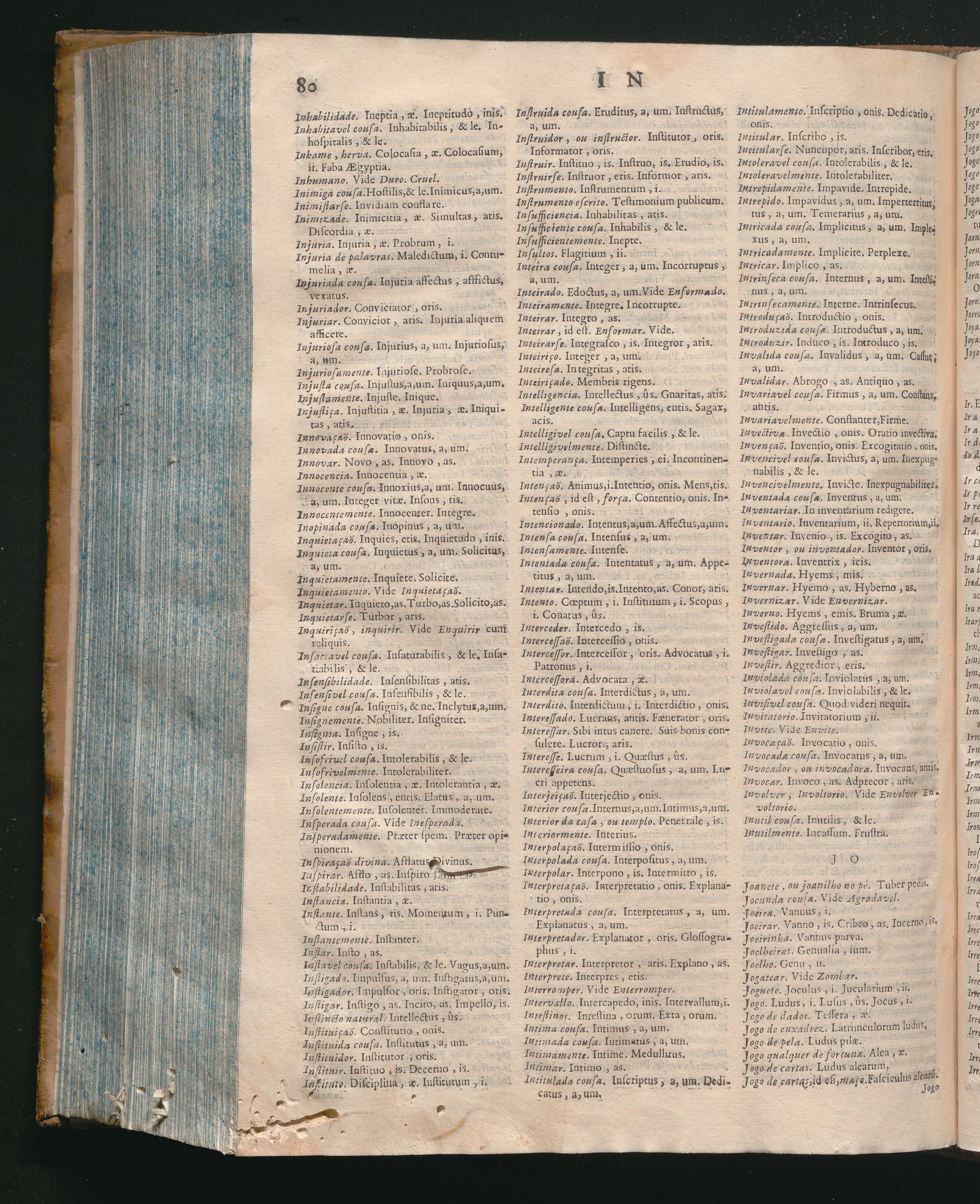 Prosodia In Vocabularium Bilingue, Latinum, Et Lusitanum, Digesta, In Qua Dictionum Significatio, Et Syllabarum Quantitas Expenditur : Opus Omnino Necessarium Professoribus Sacrarum, Et Humaniorum Literarum, Medicis, Juristis, & omnibus cujuscunque facultatis Studiosis, tum propter innumeras dictiones, quas à Sacris, & profanis Auctoribus decerptas exponit; tum propter recondita carmina omnium veterum Poetarum, & Recentiorum clari nominis, quos omnes Auctor ad expendendas syllabas perlegit / Auctore Doctore P. Benedicto Pereyra Soc. Jesu, Portugalensi, Borbano, in Eborensi Academiâ Primario olim Rhetorices Professore, & tandem in eâdem Academiâ S. Theologiæ Professore Primario