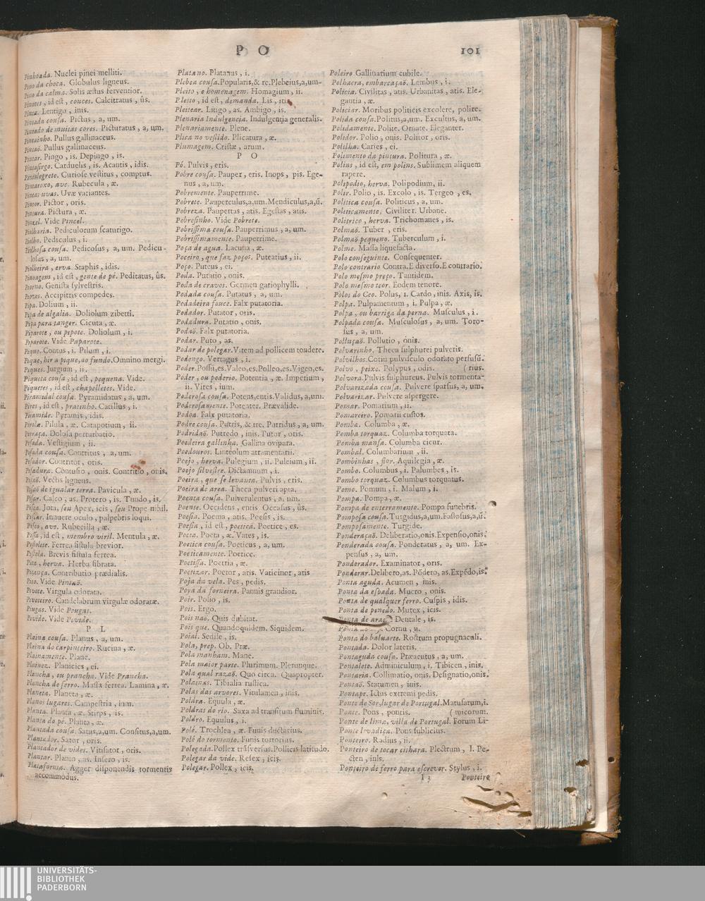 Prosodia In Vocabularium Bilingue, Latinum, Et Lusitanum, Digesta, In Qua Dictionum Significatio, Et Syllabarum Quantitas Expenditur : Opus Omnino Necessarium Professoribus Sacrarum, Et Humaniorum Literarum, Medicis, Juristis, & omnibus cujuscunque facultatis Studiosis, tum propter innumeras dictiones, quas à Sacris, & profanis Auctoribus decerptas exponit; tum propter recondita carmina omnium veterum Poetarum, & Recentiorum clari nominis, quos omnes Auctor ad expendendas syllabas perlegit / Auctore Doctore P. Benedicto Pereyra Soc. Jesu, Portugalensi, Borbano, in Eborensi Academiâ Primario olim Rhetorices Professore, & tandem in eâdem Academiâ S. Theologiæ Professore Primario