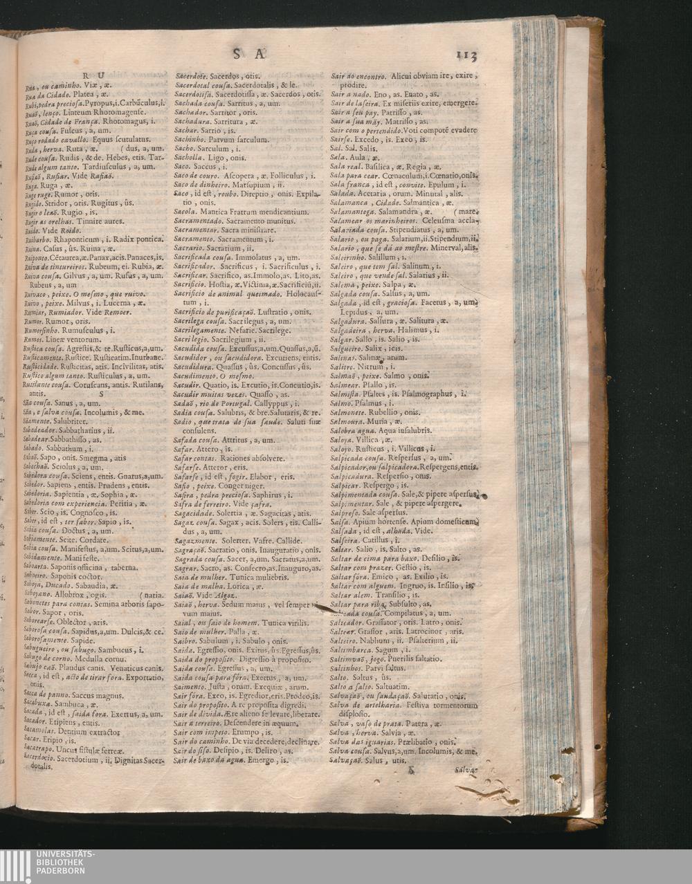 Prosodia In Vocabularium Bilingue, Latinum, Et Lusitanum, Digesta, In Qua Dictionum Significatio, Et Syllabarum Quantitas Expenditur : Opus Omnino Necessarium Professoribus Sacrarum, Et Humaniorum Literarum, Medicis, Juristis, & omnibus cujuscunque facultatis Studiosis, tum propter innumeras dictiones, quas à Sacris, & profanis Auctoribus decerptas exponit; tum propter recondita carmina omnium veterum Poetarum, & Recentiorum clari nominis, quos omnes Auctor ad expendendas syllabas perlegit / Auctore Doctore P. Benedicto Pereyra Soc. Jesu, Portugalensi, Borbano, in Eborensi Academiâ Primario olim Rhetorices Professore, & tandem in eâdem Academiâ S. Theologiæ Professore Primario