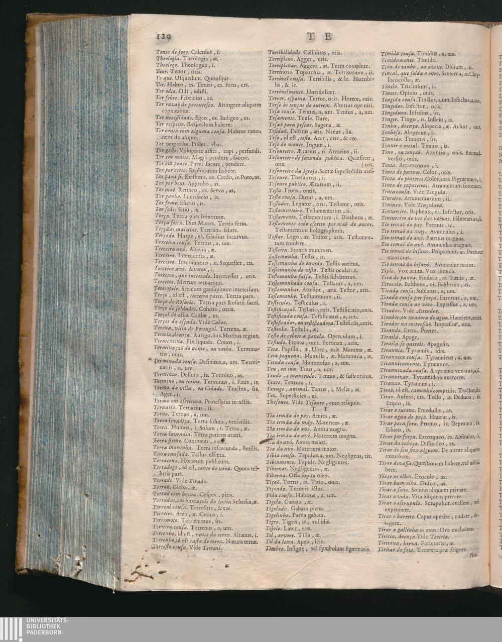 Prosodia In Vocabularium Bilingue, Latinum, Et Lusitanum, Digesta, In Qua Dictionum Significatio, Et Syllabarum Quantitas Expenditur : Opus Omnino Necessarium Professoribus Sacrarum, Et Humaniorum Literarum, Medicis, Juristis, & omnibus cujuscunque facultatis Studiosis, tum propter innumeras dictiones, quas à Sacris, & profanis Auctoribus decerptas exponit; tum propter recondita carmina omnium veterum Poetarum, & Recentiorum clari nominis, quos omnes Auctor ad expendendas syllabas perlegit / Auctore Doctore P. Benedicto Pereyra Soc. Jesu, Portugalensi, Borbano, in Eborensi Academiâ Primario olim Rhetorices Professore, & tandem in eâdem Academiâ S. Theologiæ Professore Primario