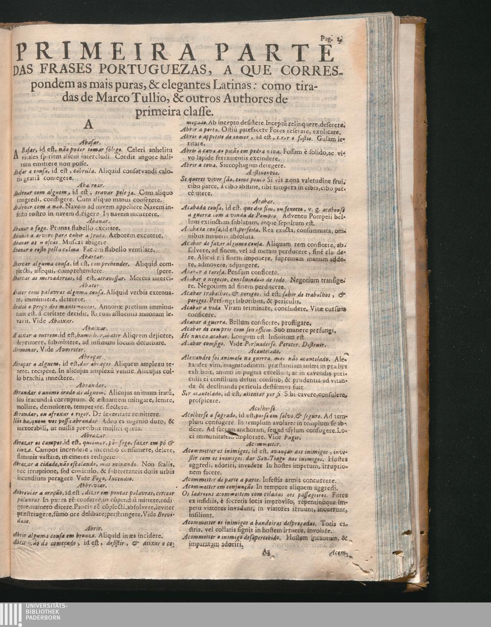 Prosodia In Vocabularium Bilingue, Latinum, Et Lusitanum, Digesta, In Qua Dictionum Significatio, Et Syllabarum Quantitas Expenditur : Opus Omnino Necessarium Professoribus Sacrarum, Et Humaniorum Literarum, Medicis, Juristis, & omnibus cujuscunque facultatis Studiosis, tum propter innumeras dictiones, quas à Sacris, & profanis Auctoribus decerptas exponit; tum propter recondita carmina omnium veterum Poetarum, & Recentiorum clari nominis, quos omnes Auctor ad expendendas syllabas perlegit / Auctore Doctore P. Benedicto Pereyra Soc. Jesu, Portugalensi, Borbano, in Eborensi Academiâ Primario olim Rhetorices Professore, & tandem in eâdem Academiâ S. Theologiæ Professore Primario