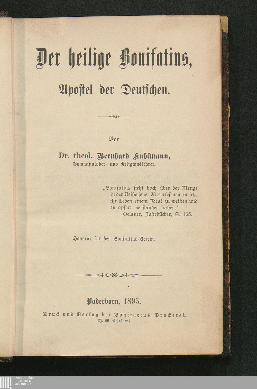 Der heilige Bonifatius, Apostel der Deutschen / von Bernhard Kuhlmann