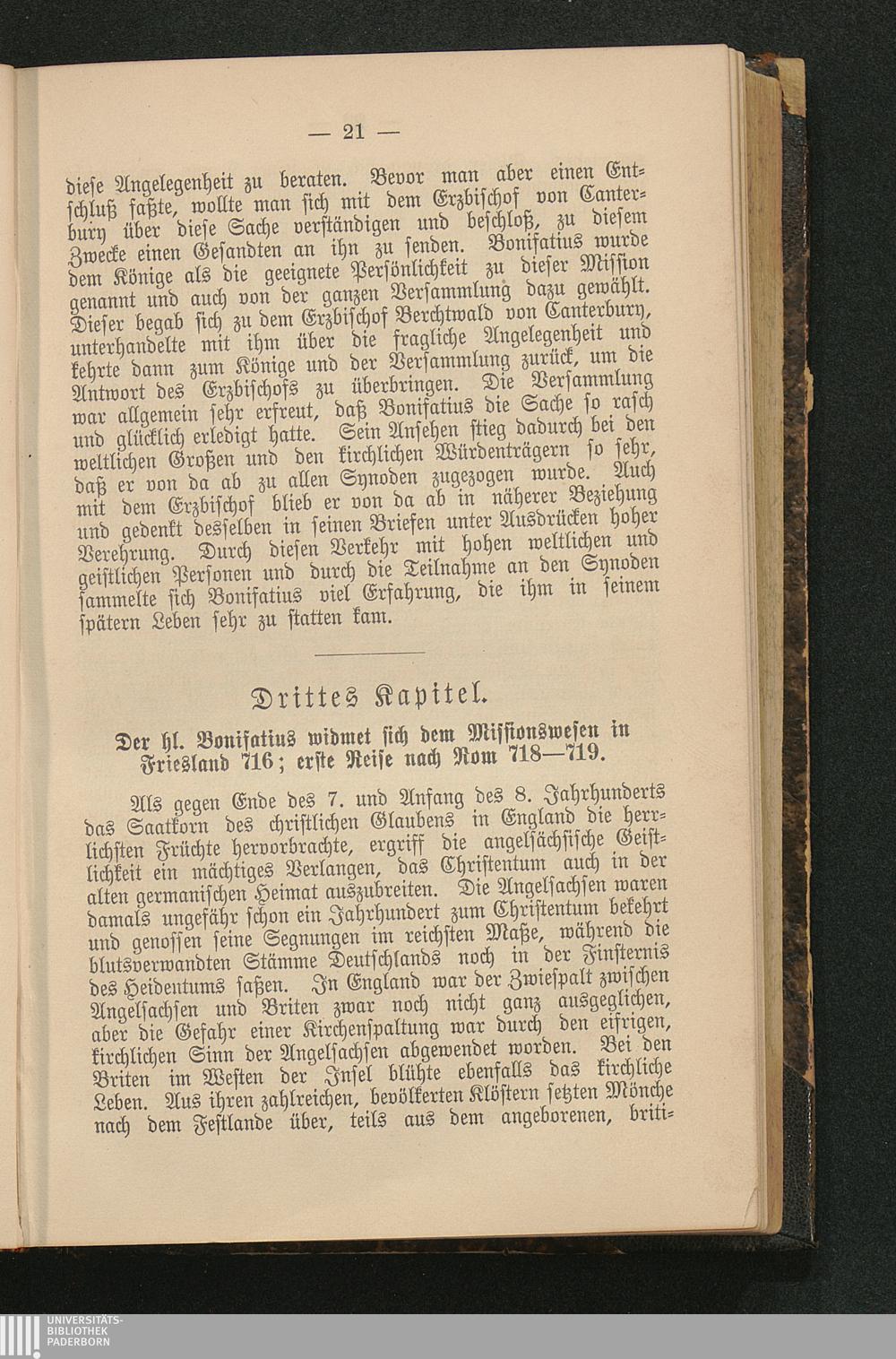 Drittes Kapitel: Der hl. Bonifatius widmet sich dem Missionswesen in Friesland 716;[...]
