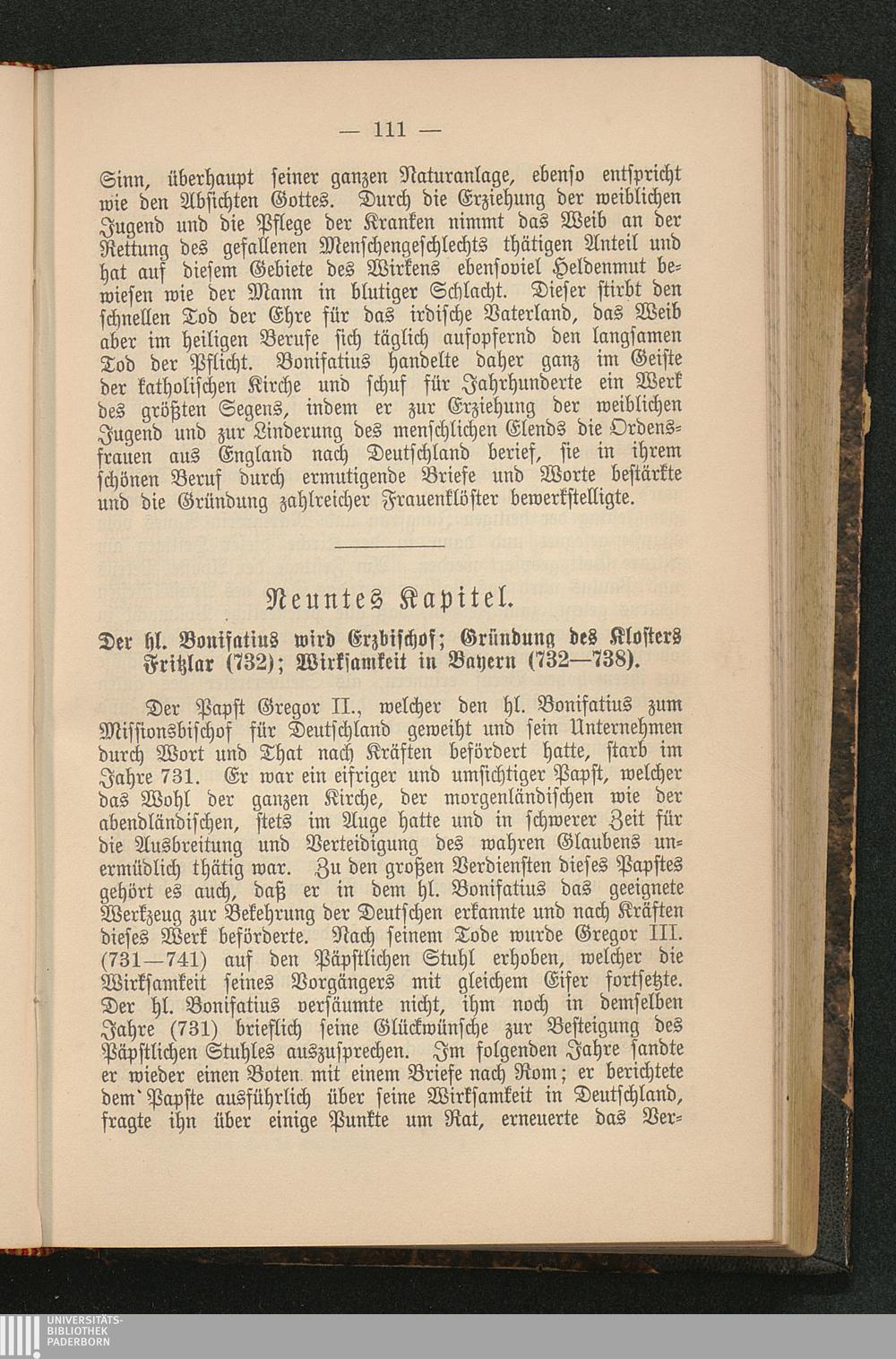 Neuntes Kapitel: Der heilige Bonifatius wird Erzbischof; Gründung des Klosters Fritzlar[...]