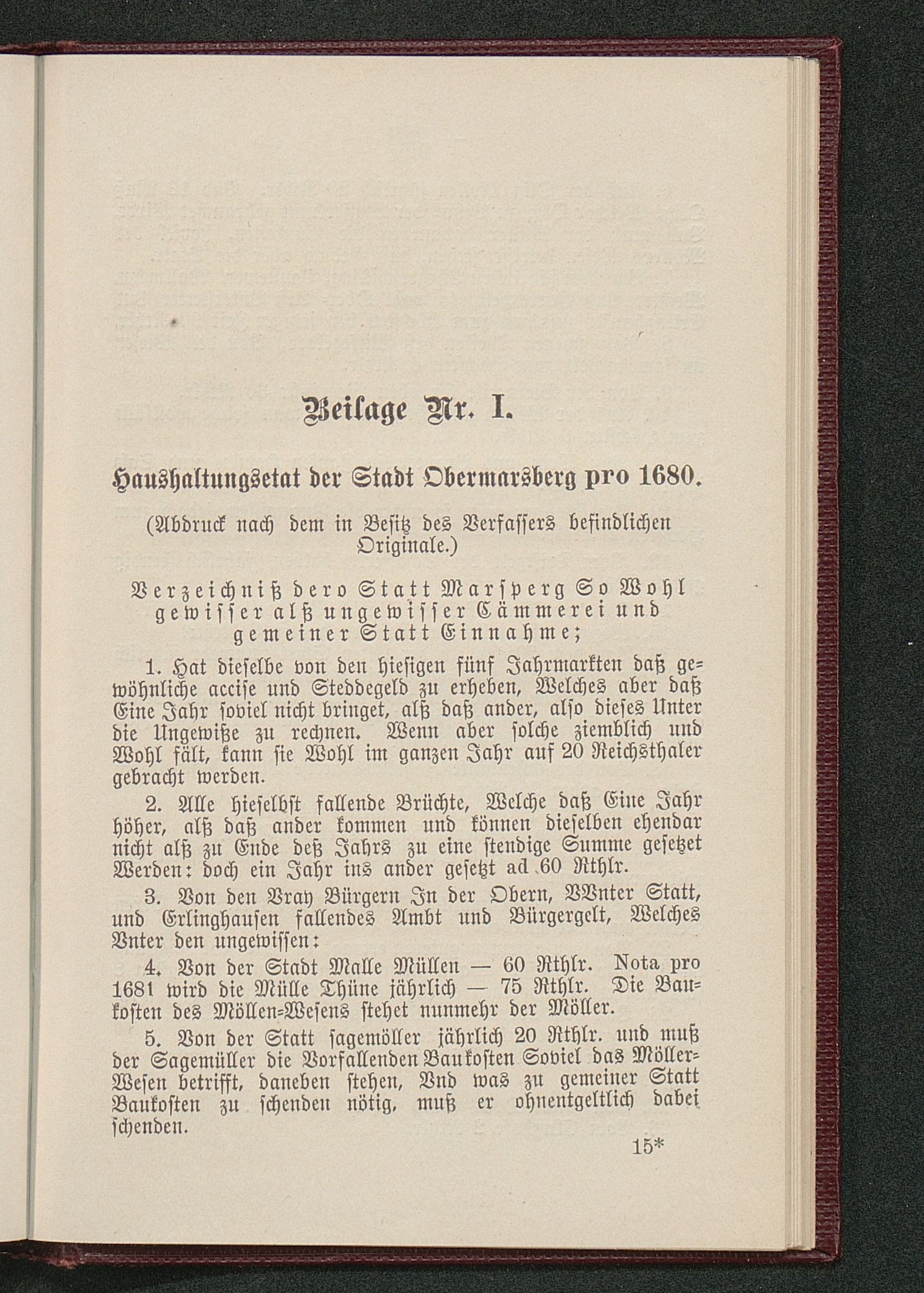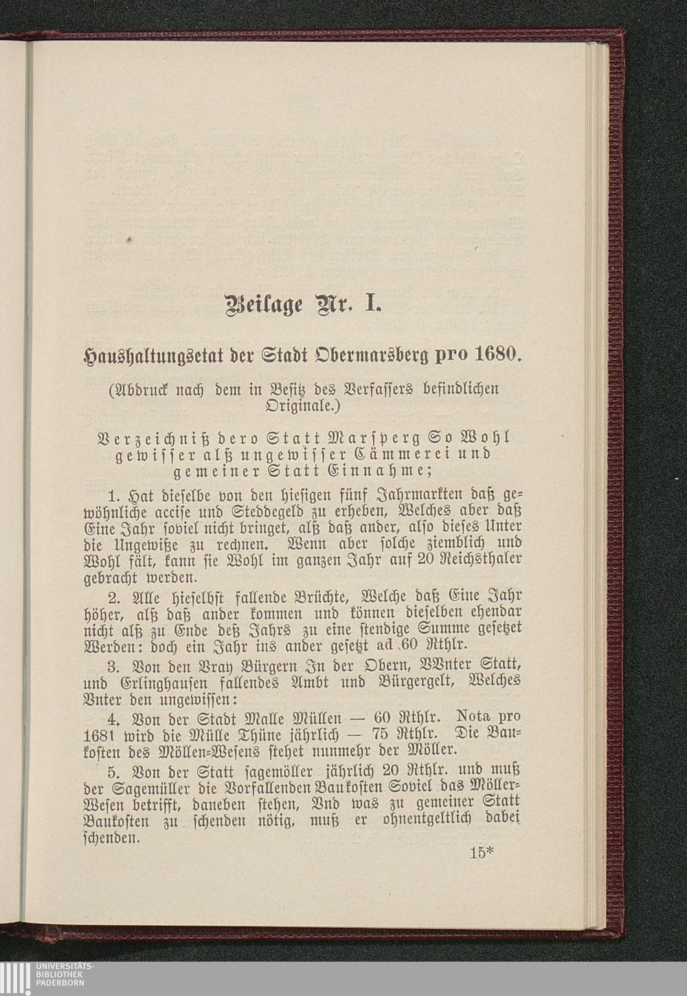 Beilage Nr. I. Haushaltungsetat der Stadt Obermarsberg pro 1680.