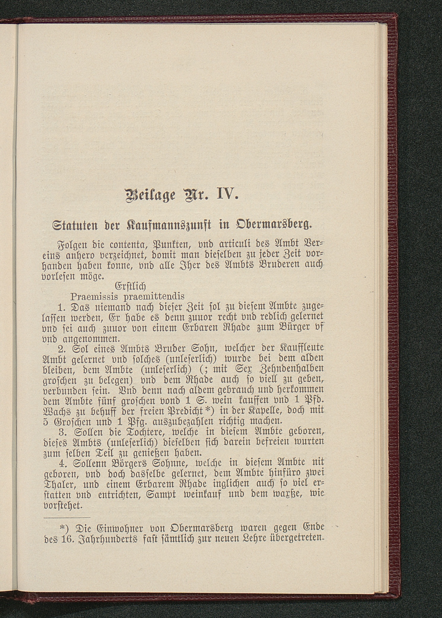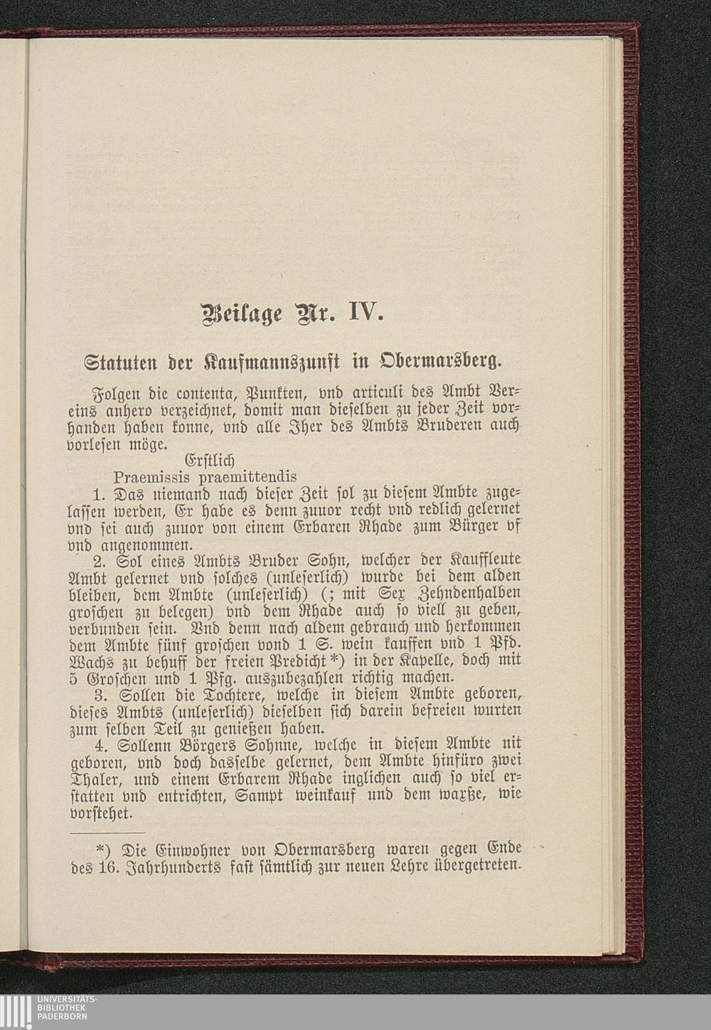 Beilage Nr. IV. Statuten der Kaufmannszunft in Obermarsberg.