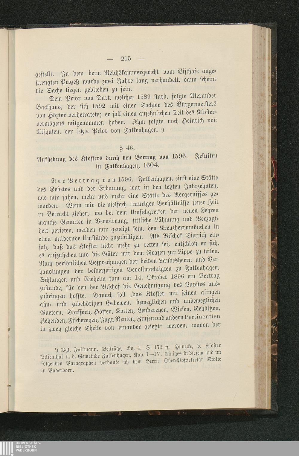 § 46. Aufhebung des Klosters durch den Vertrag von 1596. Jesuiten in Falkenhagen,[...]