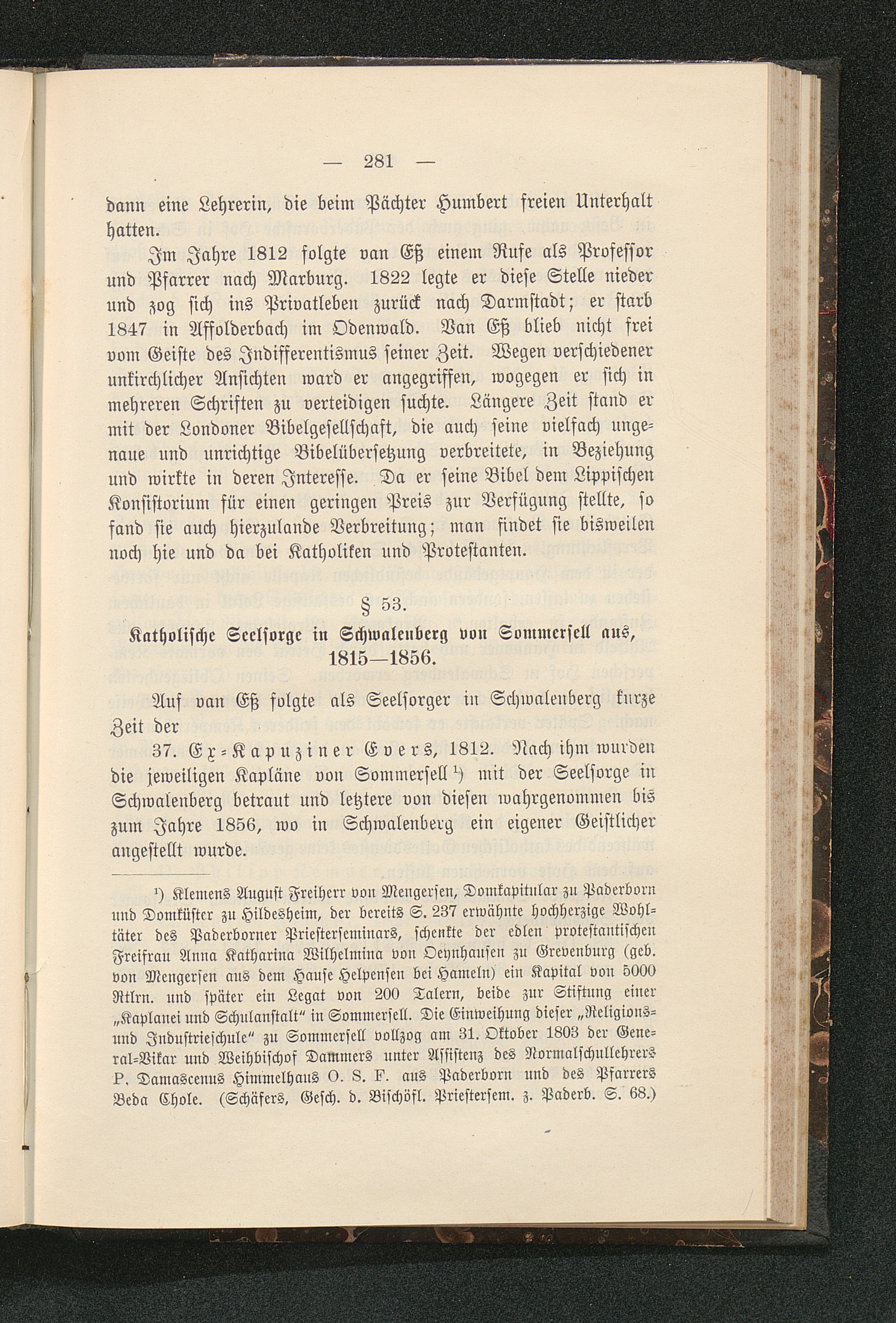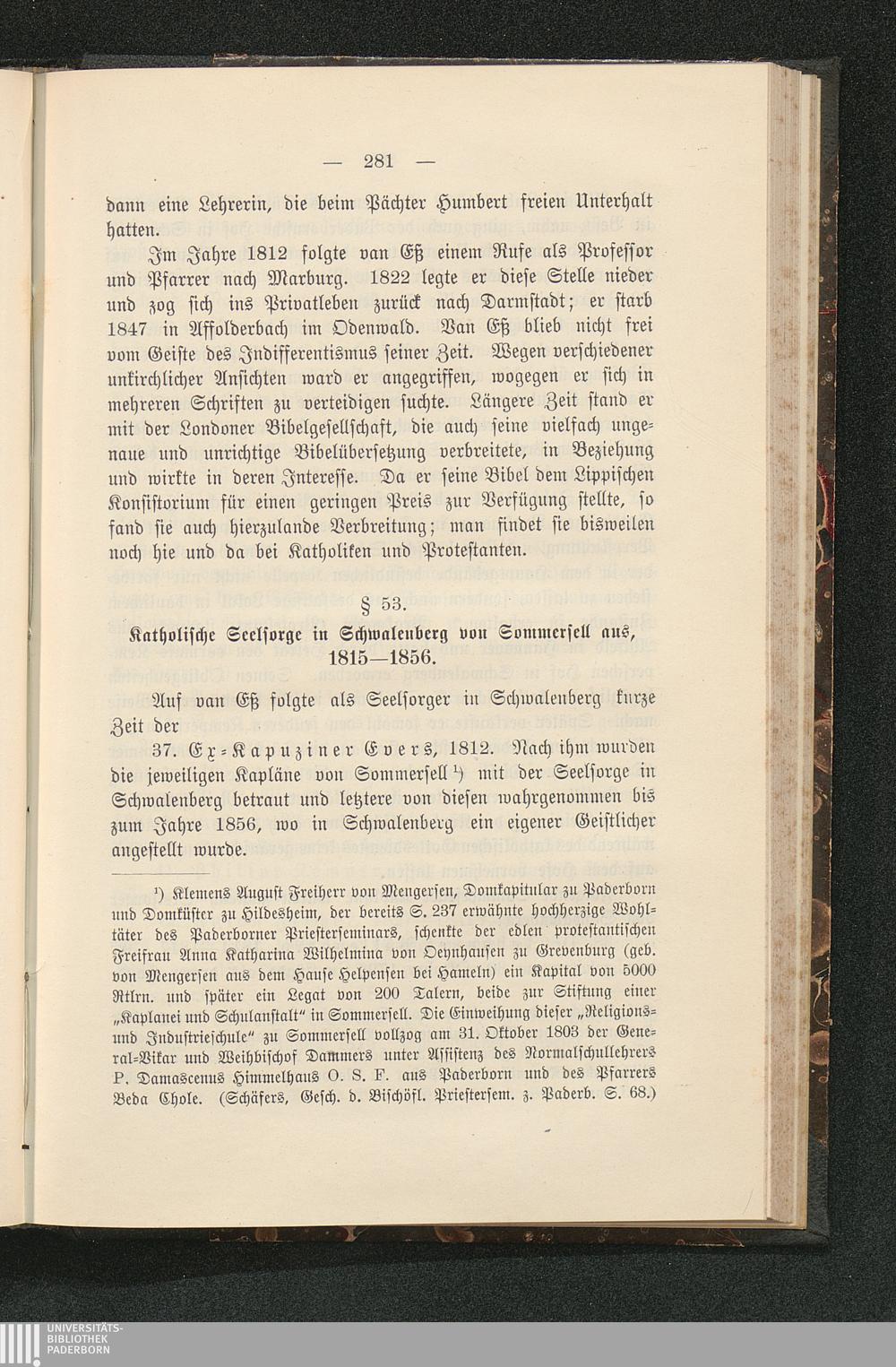 § 53. Katholische Seelsorge in Schwalenberg von Sommersell aus, 1815 - 1856