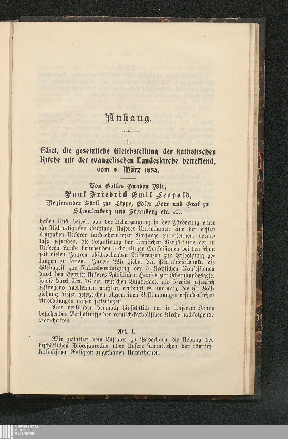1. Edikt, die gesetzliche Gleichstellung der katholischen Kirche mit der evangelischen[...]