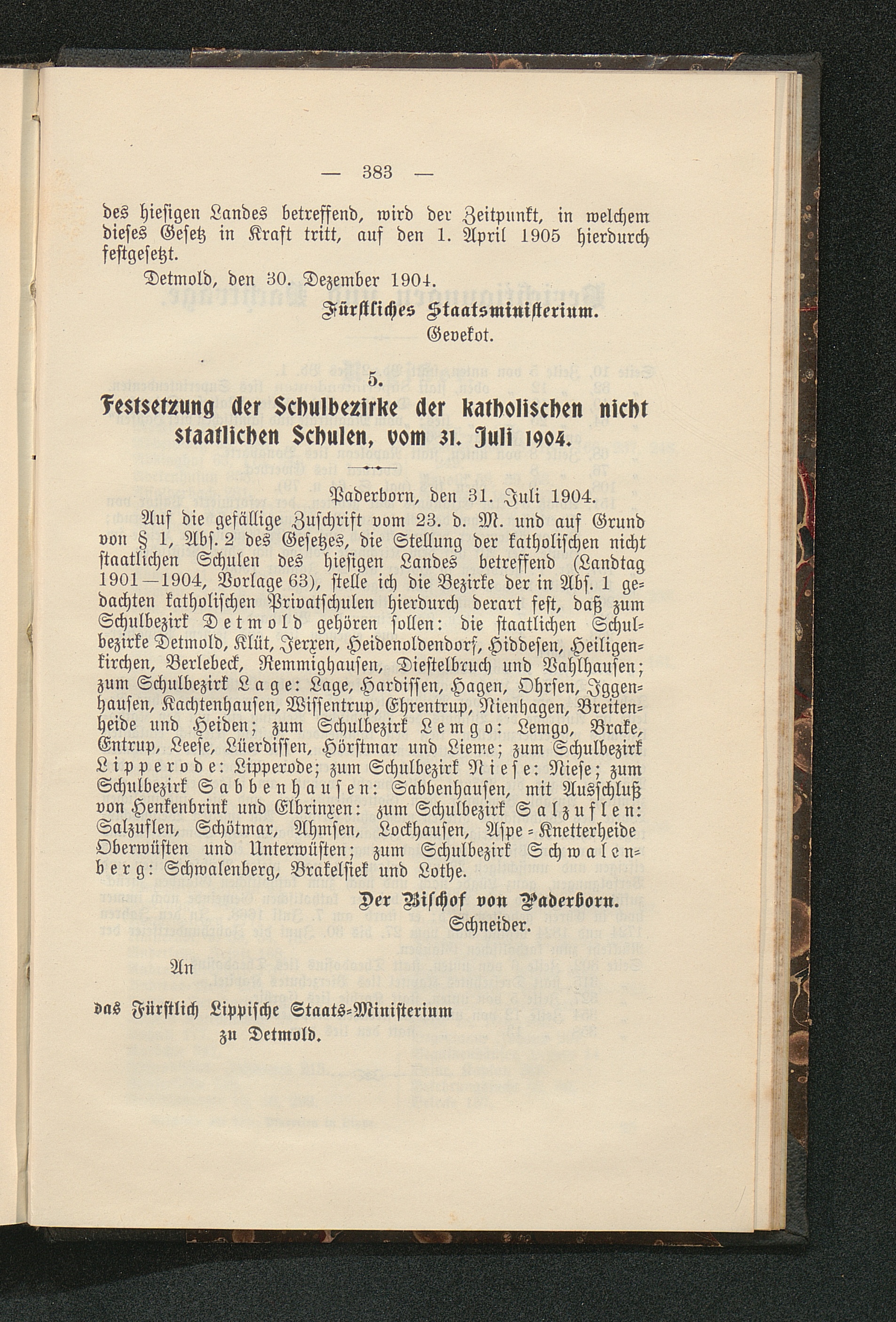 5. Festsetzung der Schulbezirke der katholischen nicht staatlichen Schulen vom 31.[...]