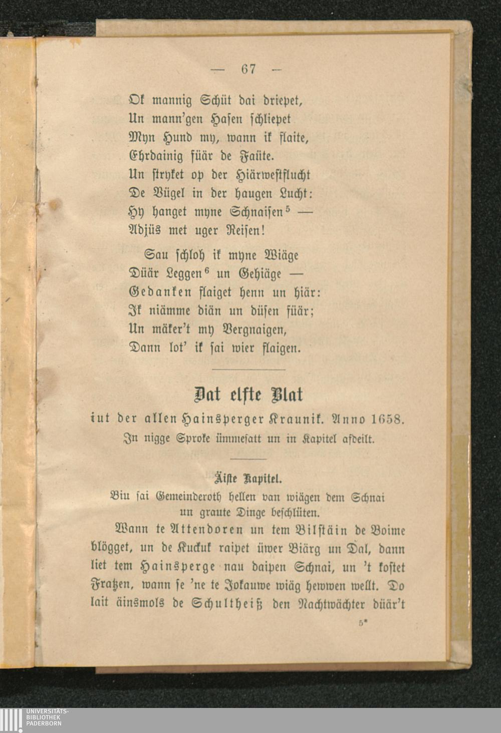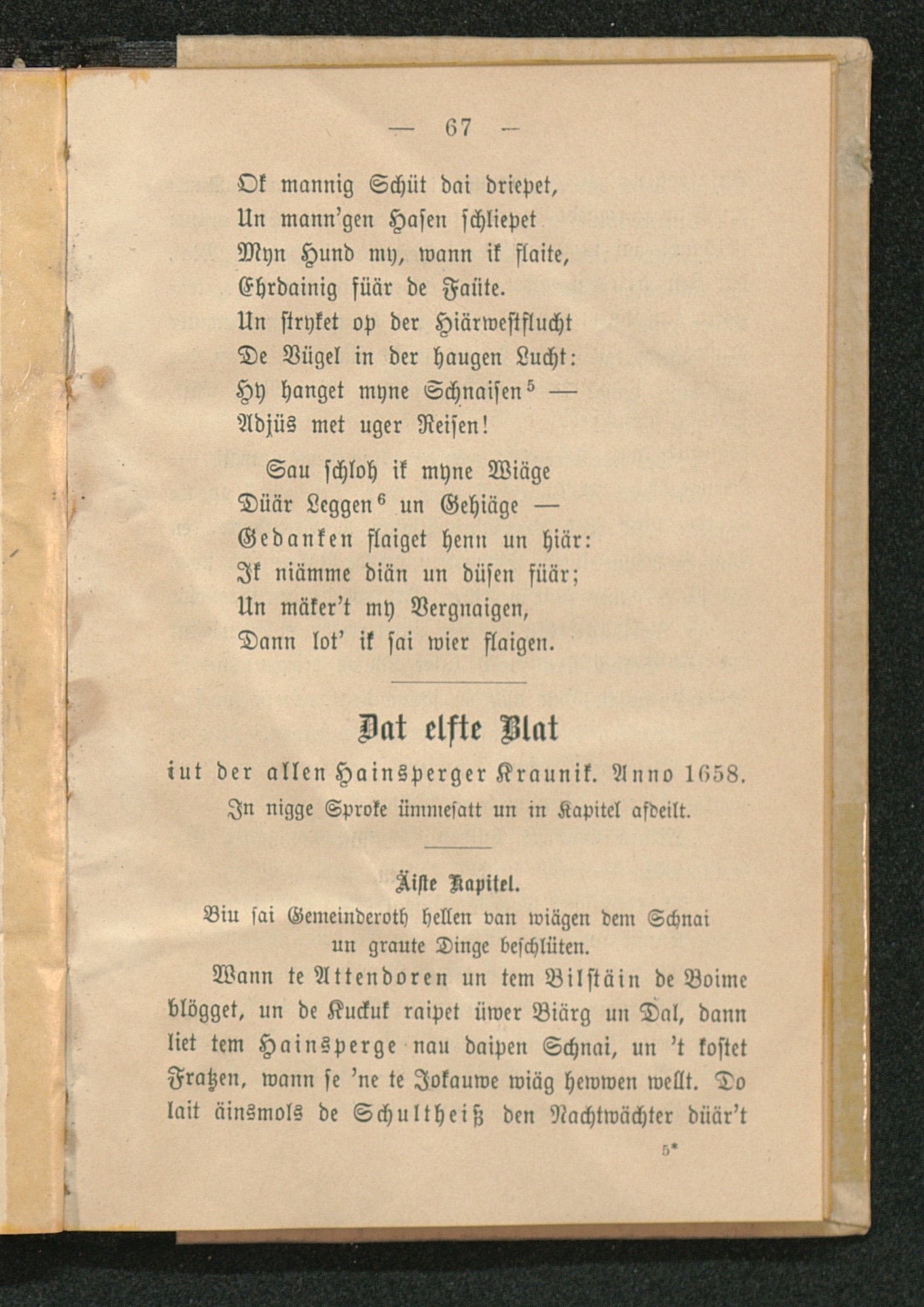 Det elfte Blatt iut der allen Hainsberger Kraunik. Anno 1658.