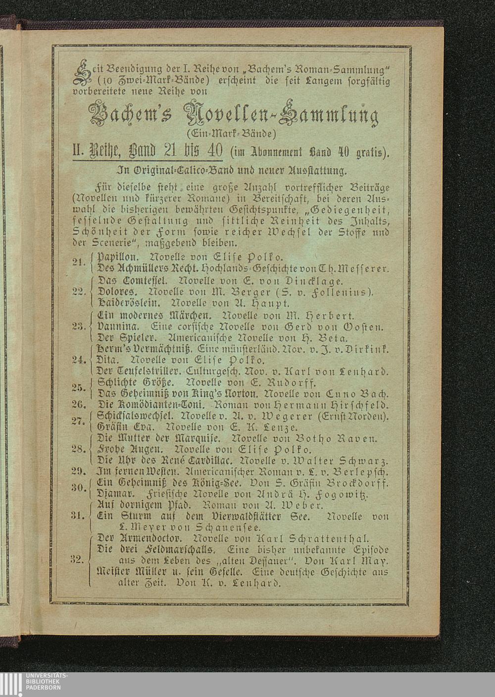 Aus fernen Landen. Novelle von Ferdinande Freiin von Brackel.