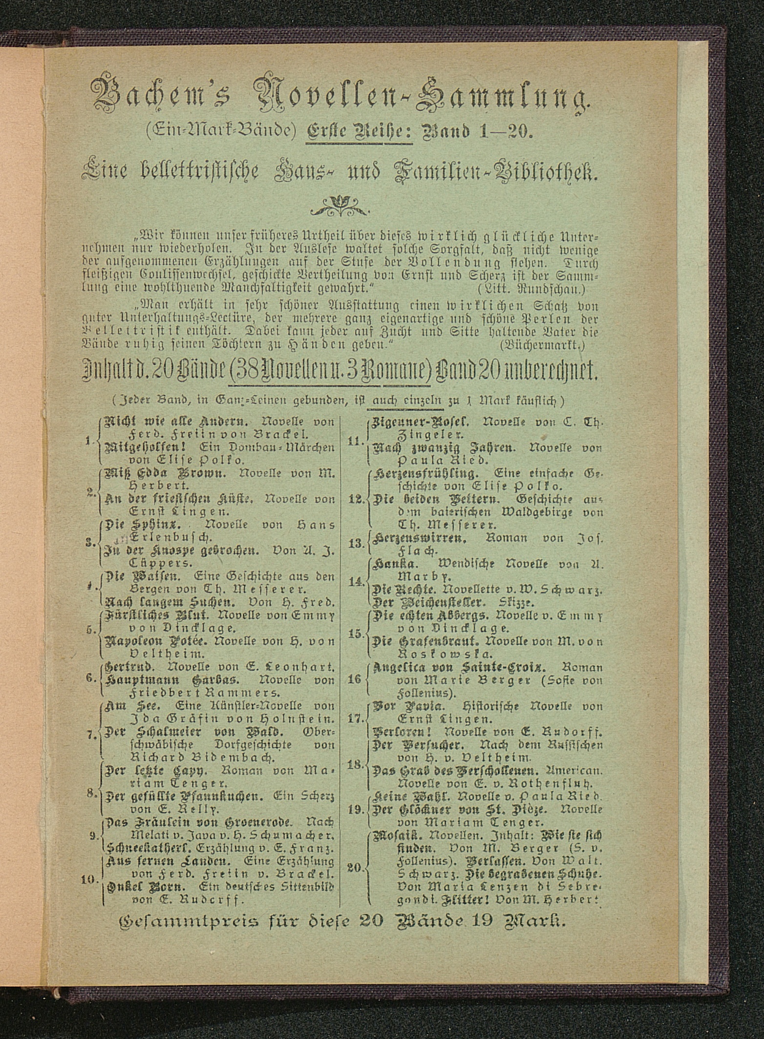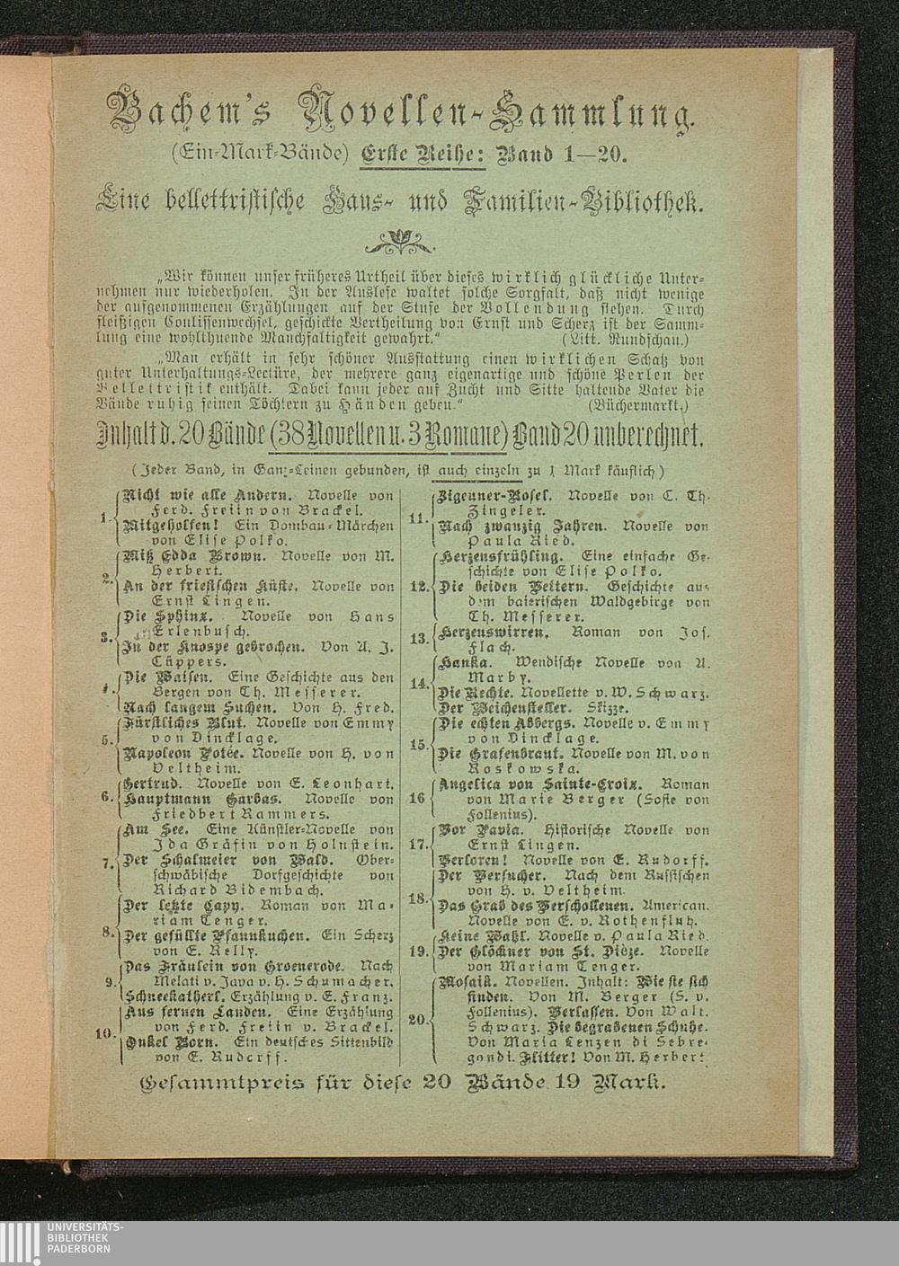 Aus fernen Landen. Novelle von Ferdinande Freiin von Brackel.