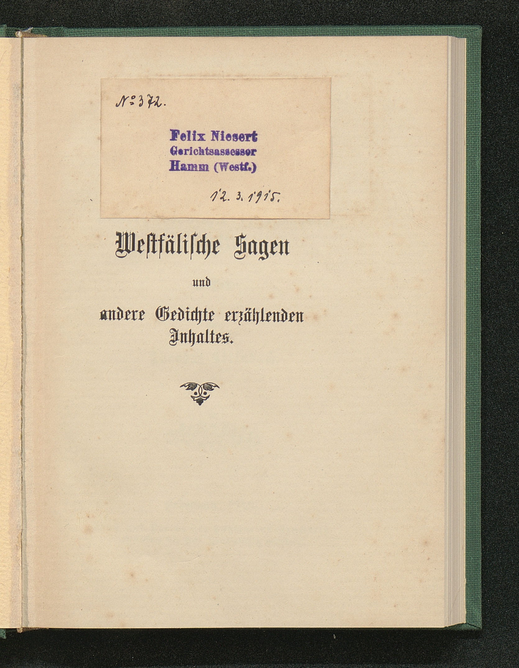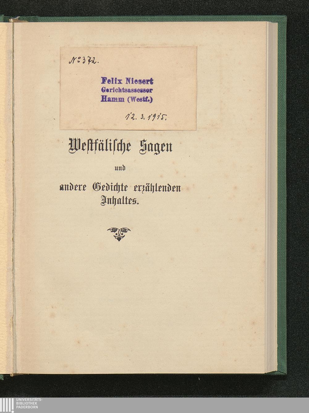 Westfälische Sagen und andere Gedichte erzählenden Inhaltes