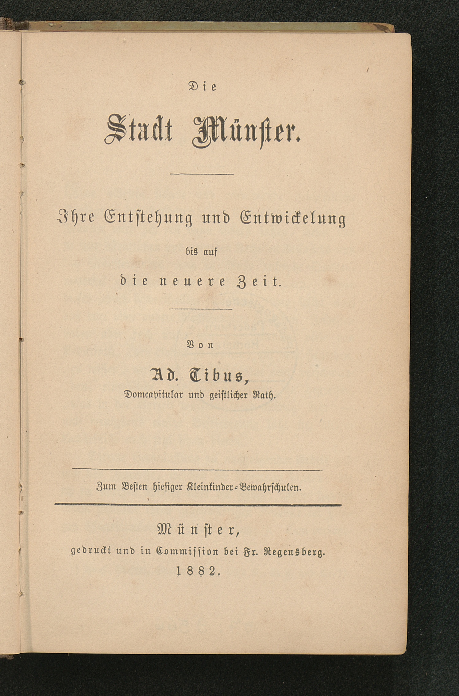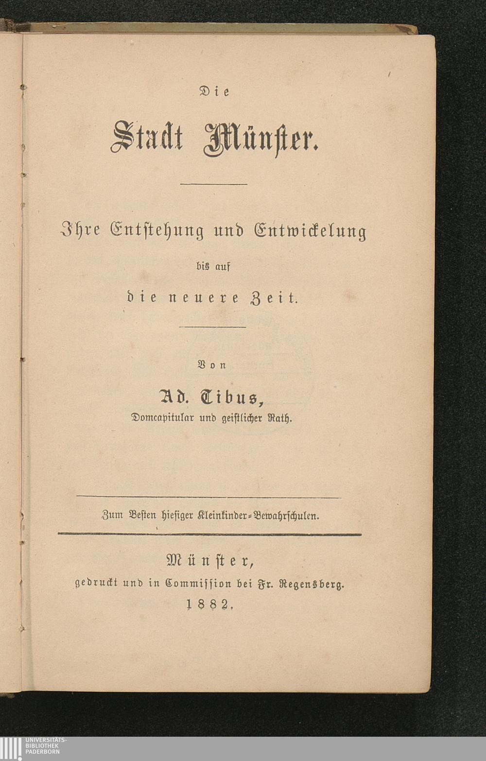 Die Stadt Münster : ihre Entstehung und Entwickelung bis auf die neuere Zeit / von Ad. Tibus