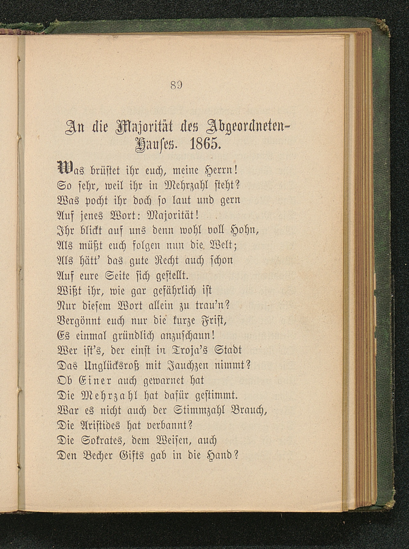 An die Majorität des Abgeordneten-Hauses. 1865.