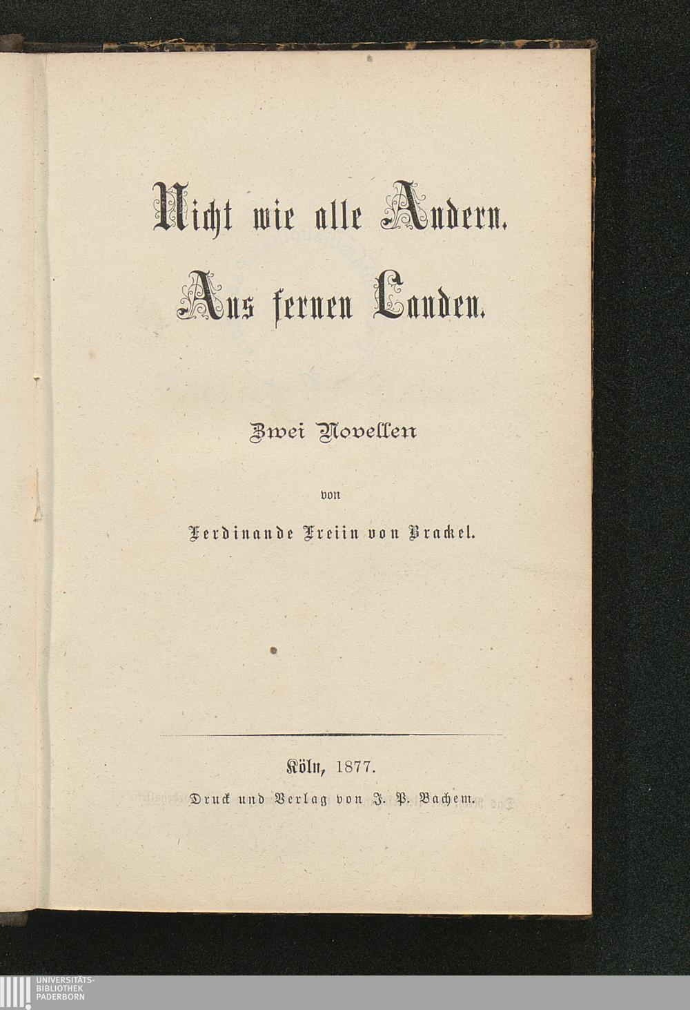 Nicht wie alle andern / von Ferdinande Freiin von Brackel