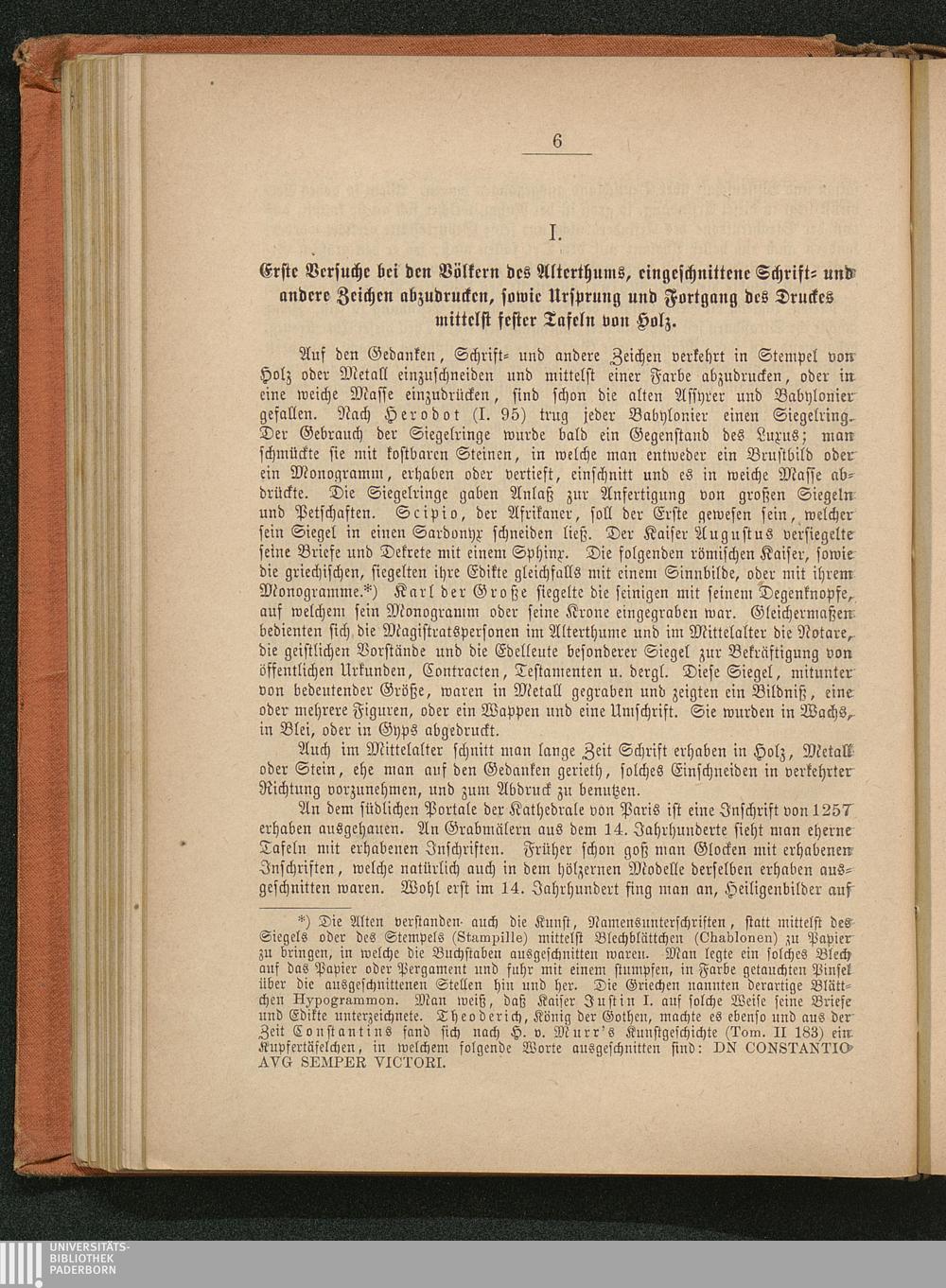 I. Erste Versuche bei den Völkern des Alterthums, eingeschnittene Schrift- und andere[...]