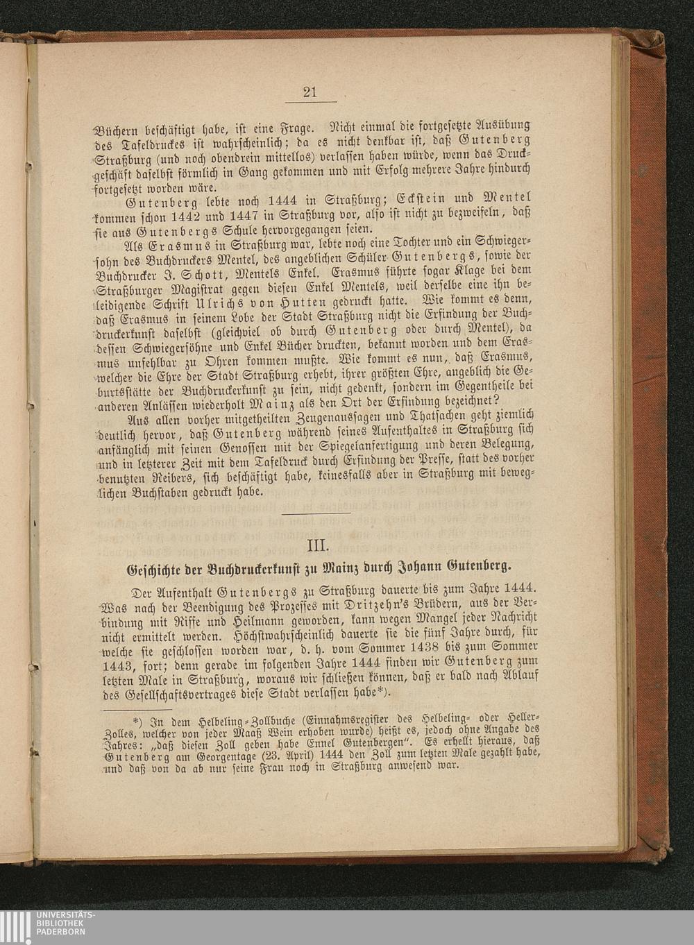 III. Geschichte der Buchdruckerkunst zu Mainz durch Johann Gutenberg.