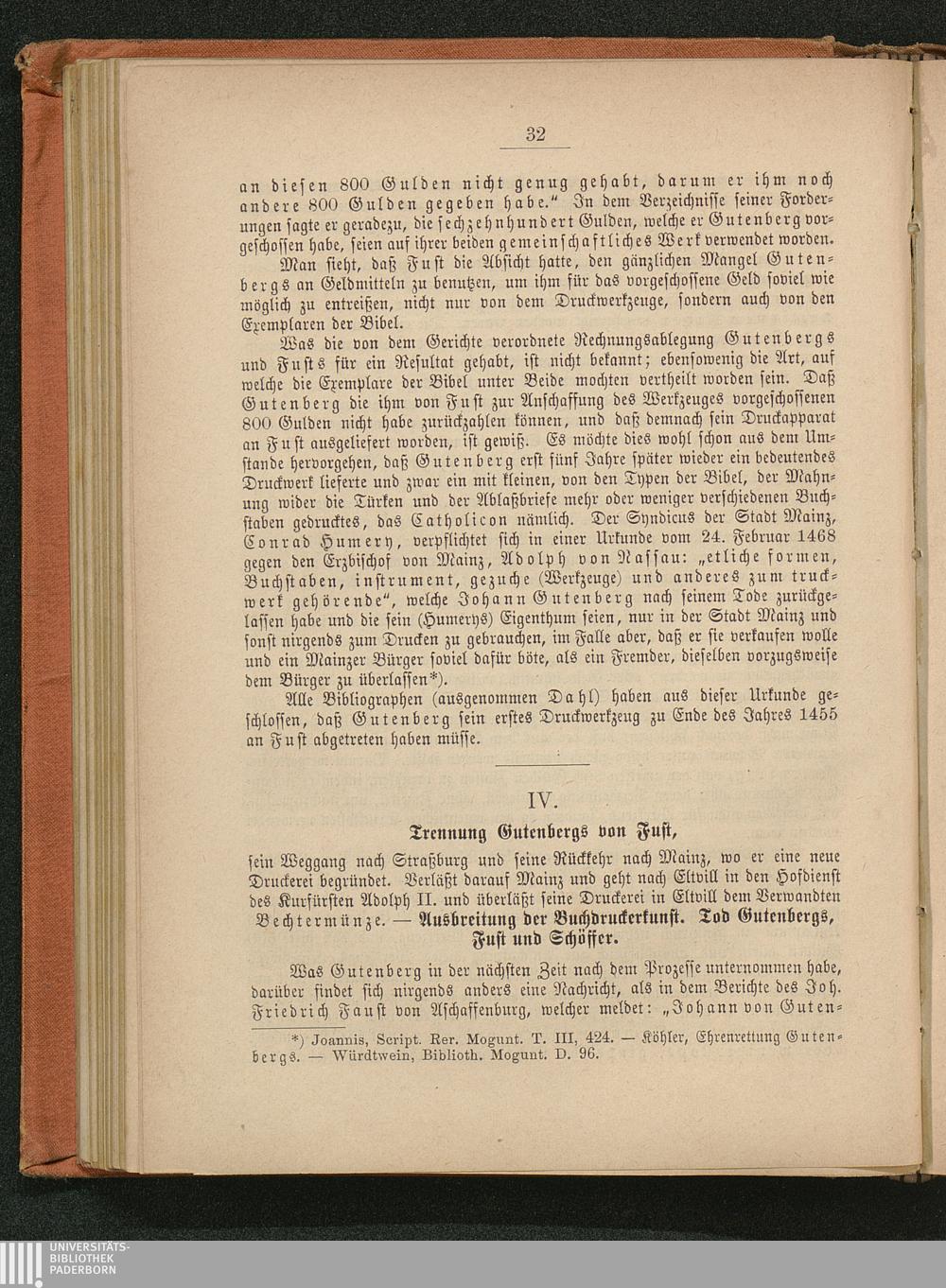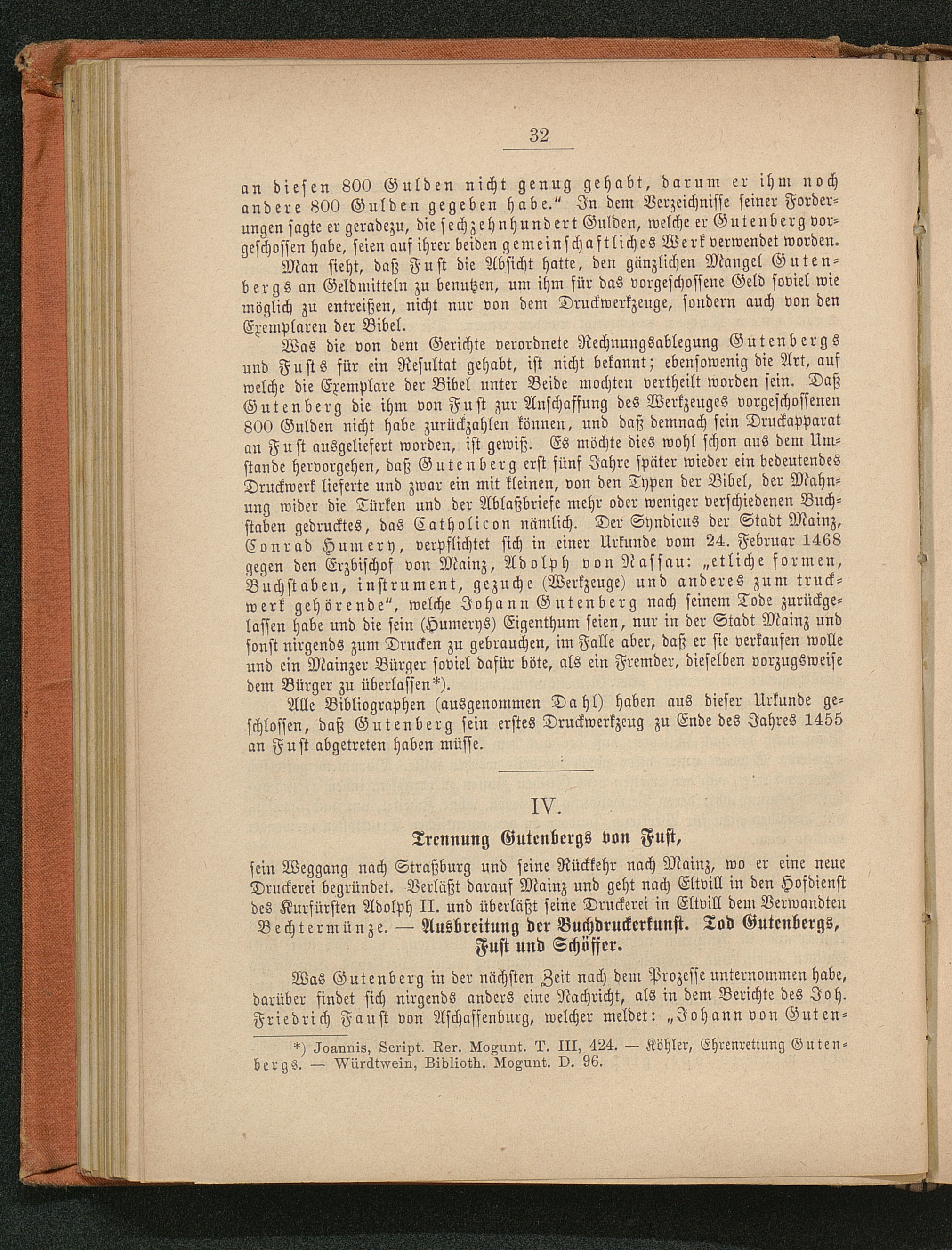 IV. Trennung Gutenbergs von Fust, ... - Ausbreitung der Buchdruckerkunst. Tod Gutenbergs,[...]