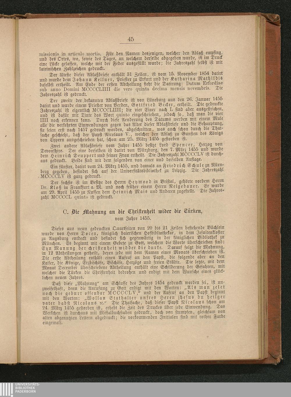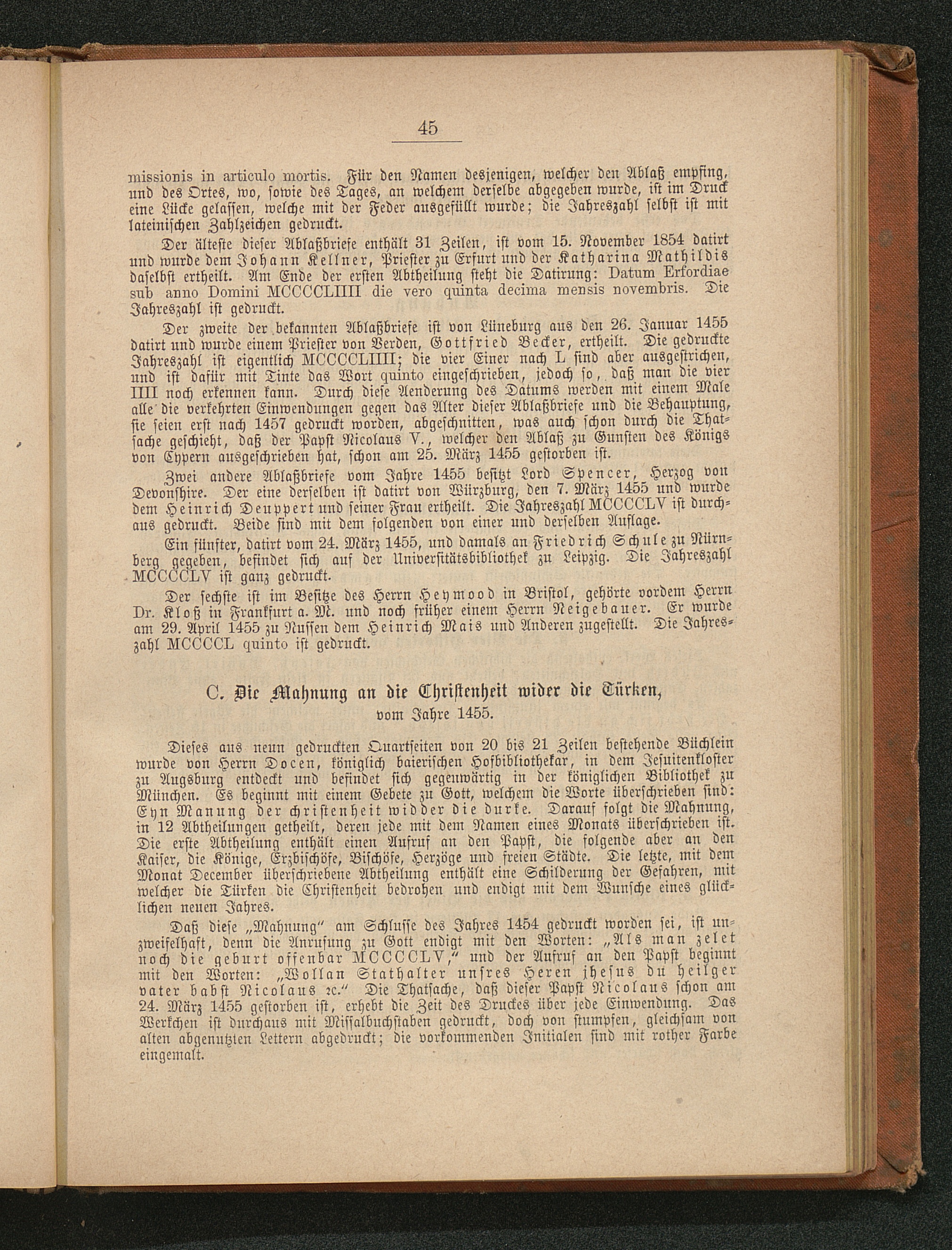 C. Die Mahnung an die Christenheit wider die Türken, vom Jahre 1455.