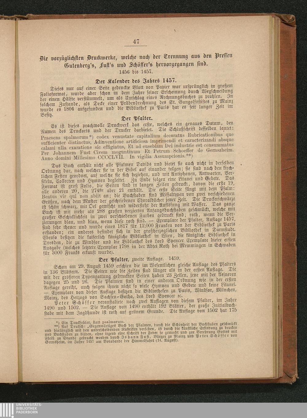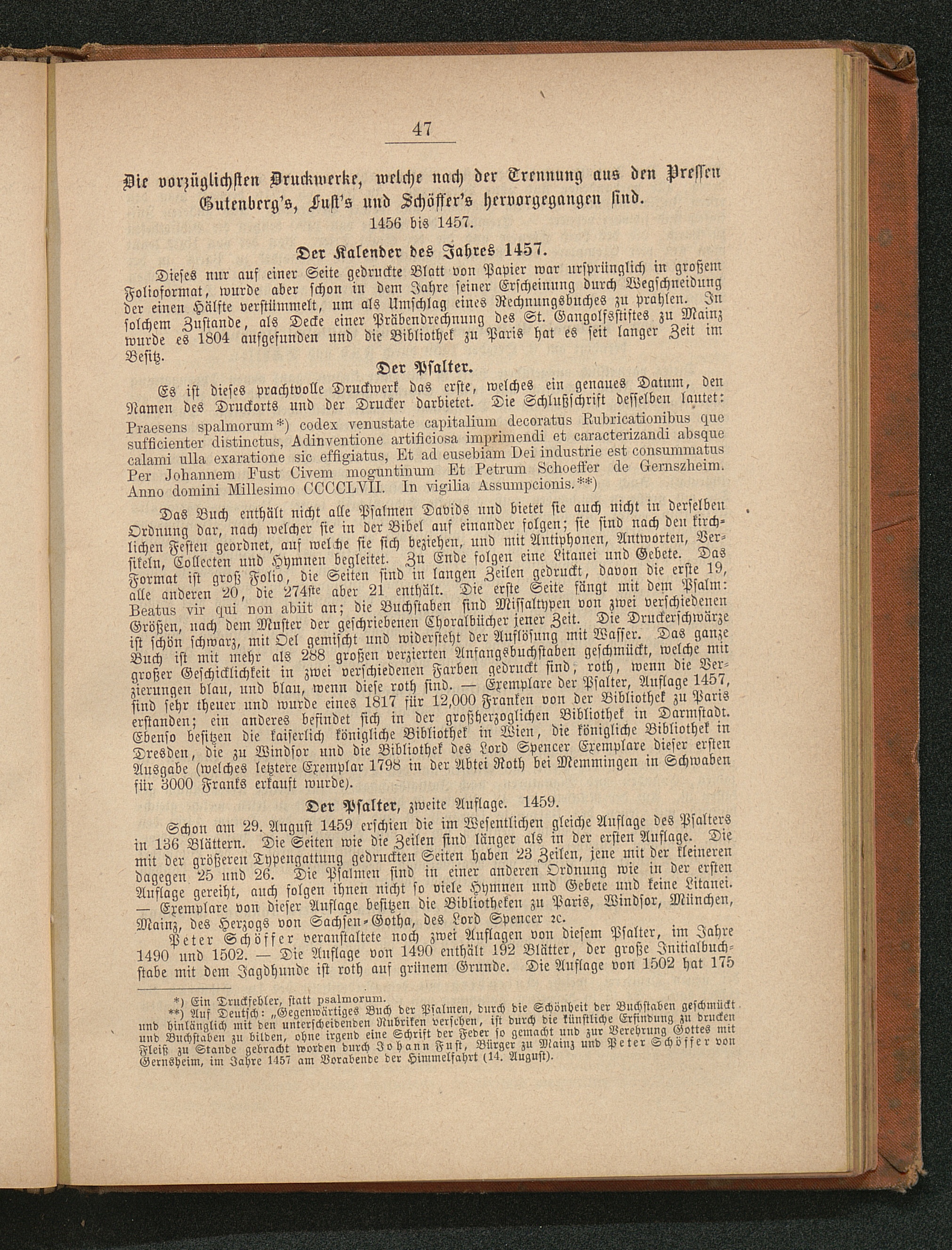 Die vorzüglichsten Druckwerke, welche nach der Trennung aus den Pressen Gutenberg's, Fust's und Schöffer's hervorgegangen sind.