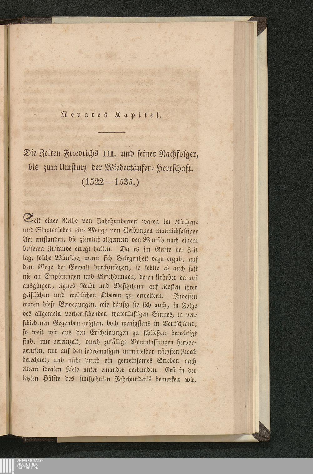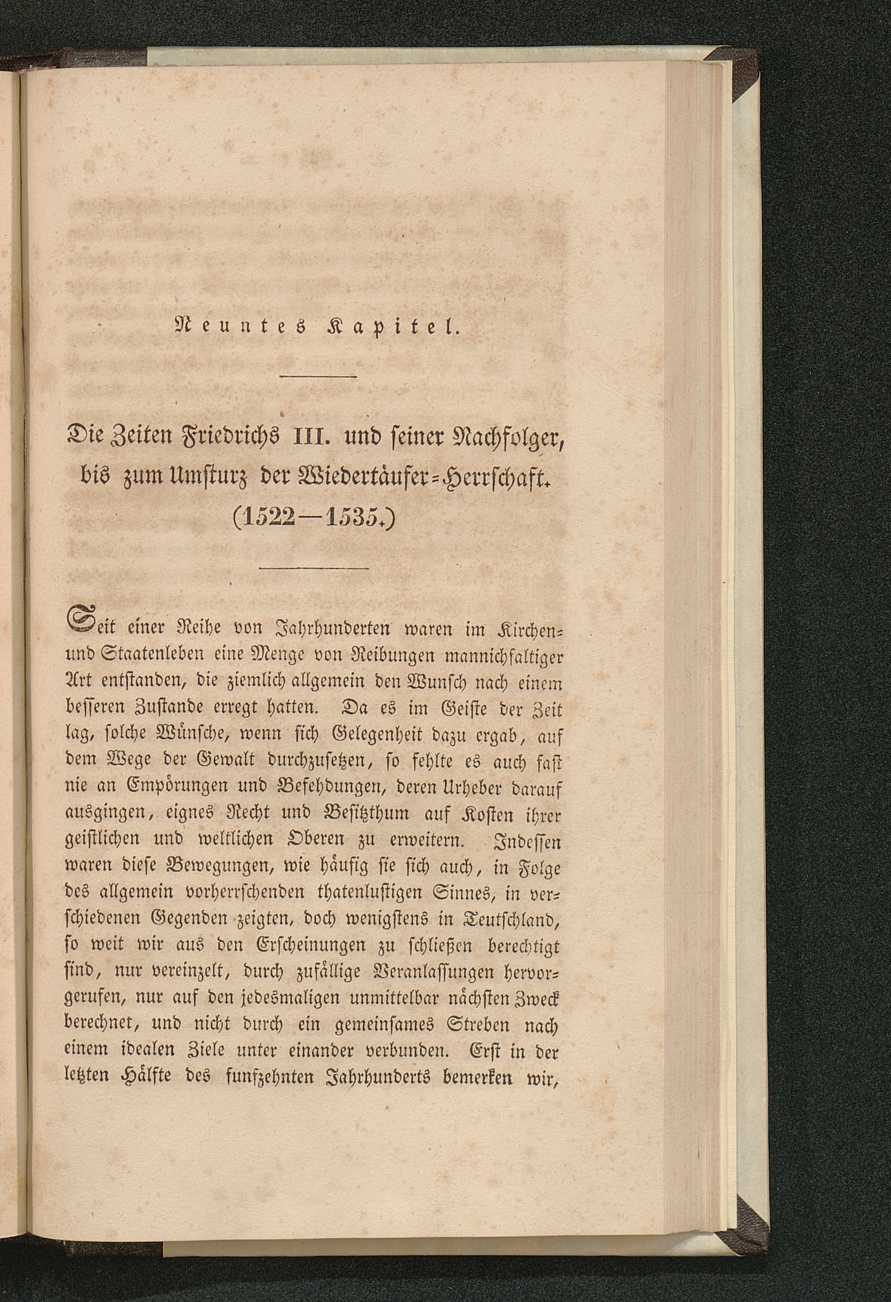 Neuntes Kapitel. Die Zeiten Friedrichs III. und seiner Nachfolger, bis zum Umsturz der Wiedertäufer-Herrschaft. (1522 - 1535.)