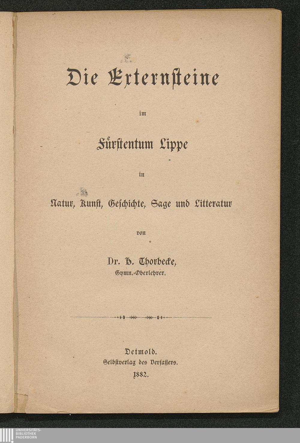 Die Externsteine im Fürstentum Lippe in Natur, Kunst, Geschichte, Sage und Litteratur / von H. Thorbecke