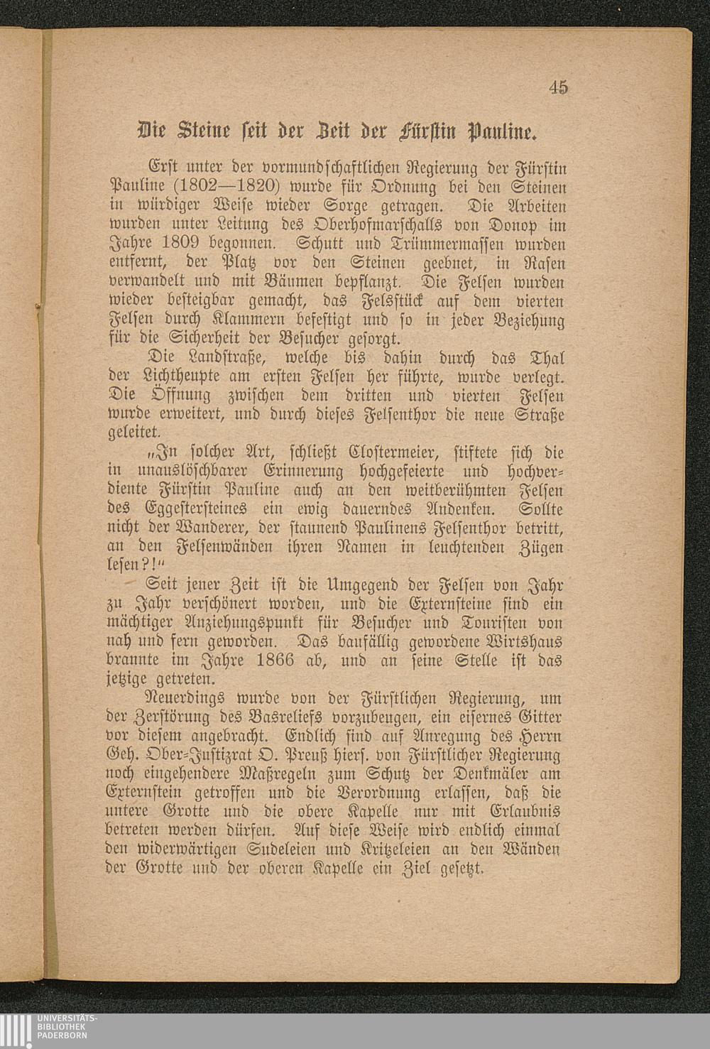 Die Externsteine im Fürstentum Lippe in Natur, Kunst, Geschichte, Sage und Litteratur / von H. Thorbecke