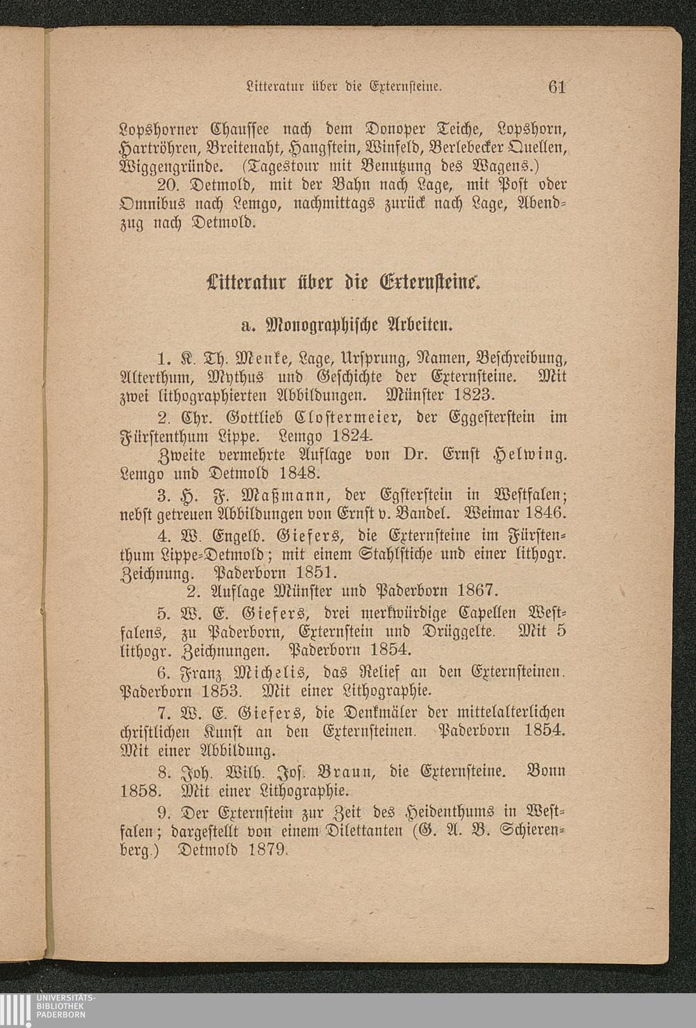Die Externsteine im Fürstentum Lippe in Natur, Kunst, Geschichte, Sage und Litteratur / von H. Thorbecke