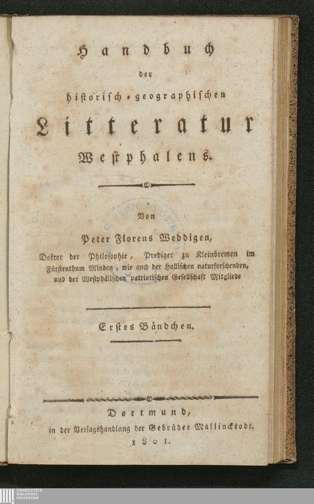 Handbuch der historisch-geographischen Litteratur Westphalens.