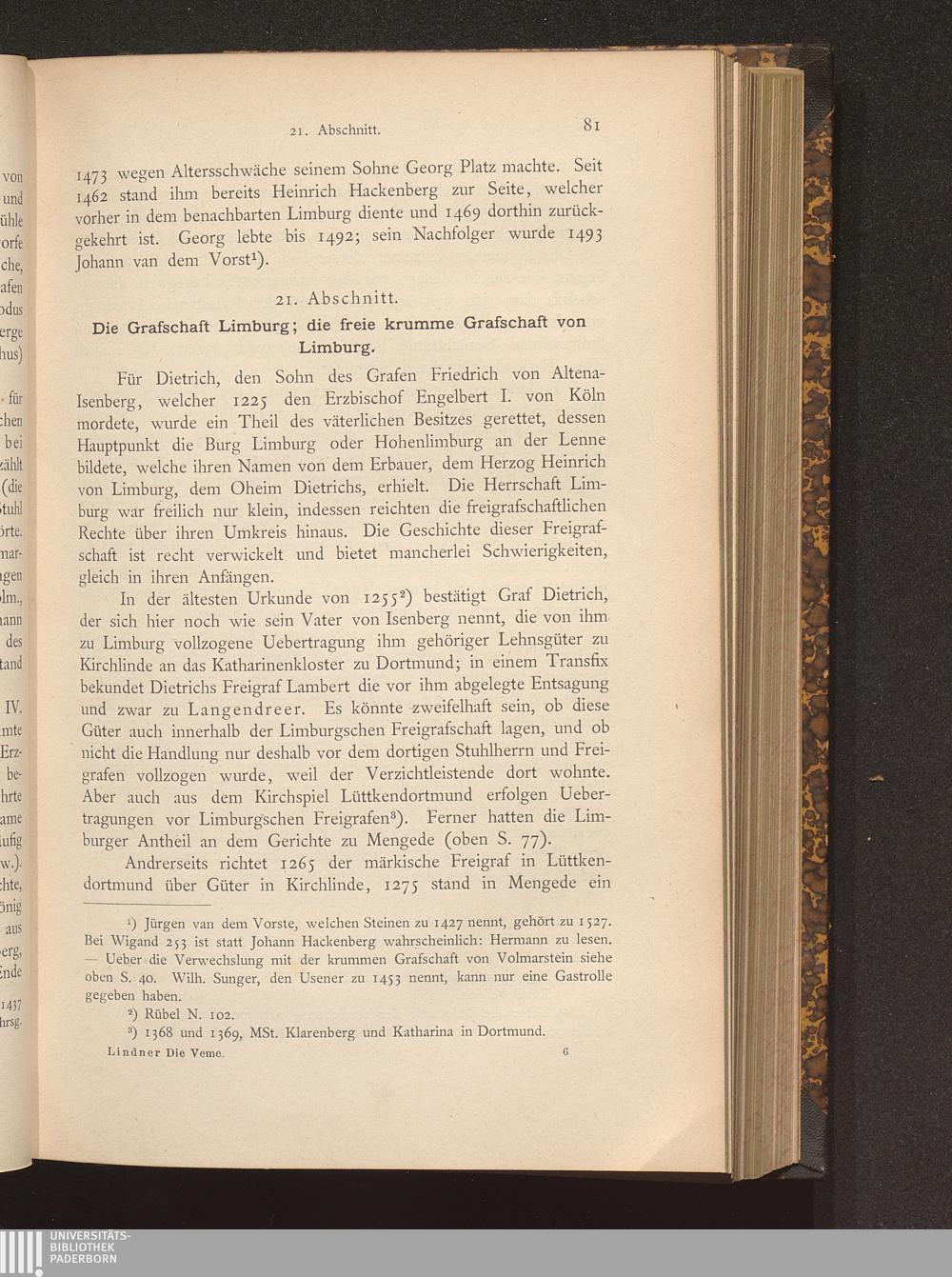 21. Abschnitt. Die Grafschaft Limburg; die freie krumme Grafschaft von Limburg
