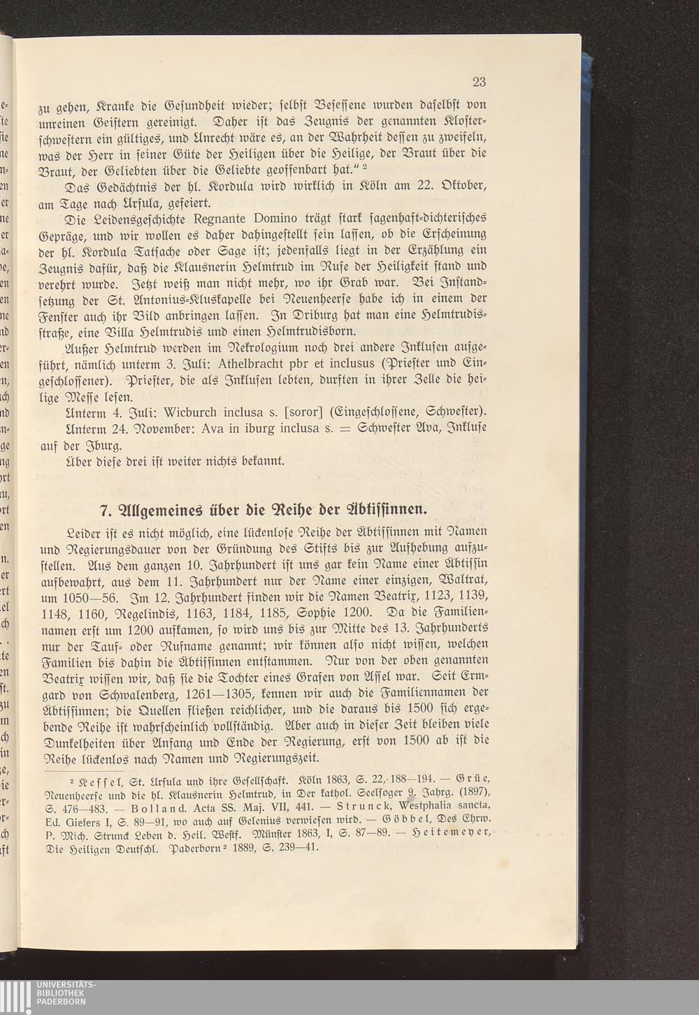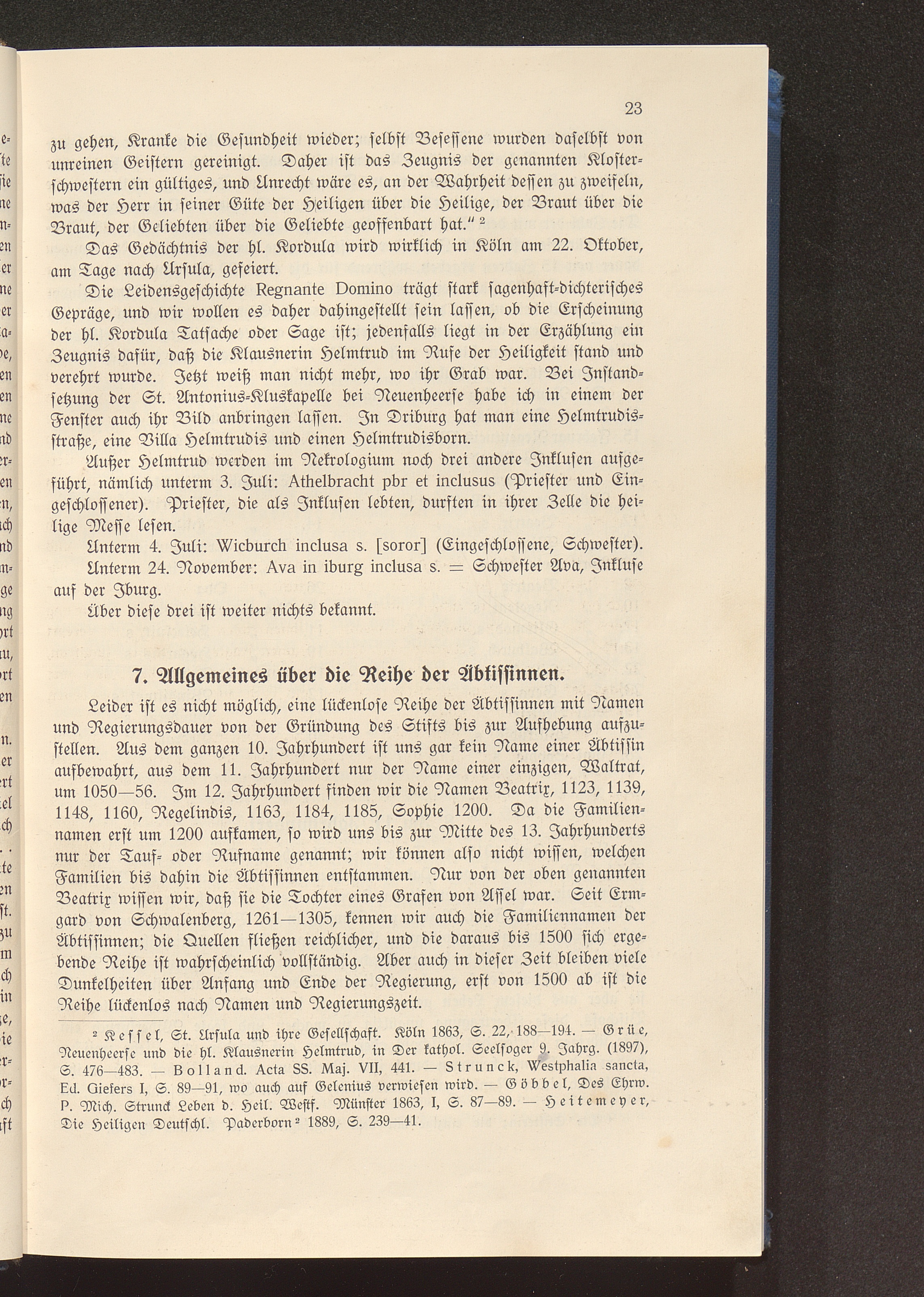 7. Allgemeines über die Reihe der Äbtissinnen.