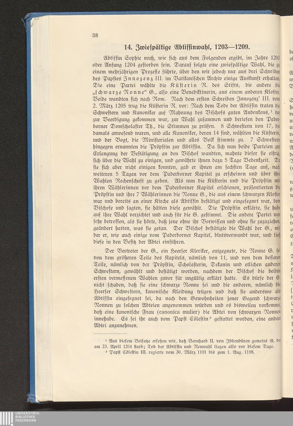 14. Zwiespältige Äbtissinnenwahl, 1203-1209.